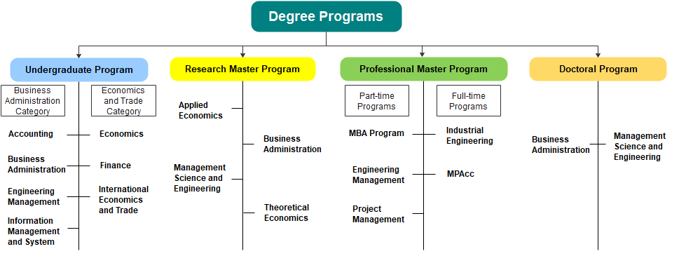 -Accounting -Business Administration -Engineering Management -Information Management and System -Economics -Finance -International Economics and Trade