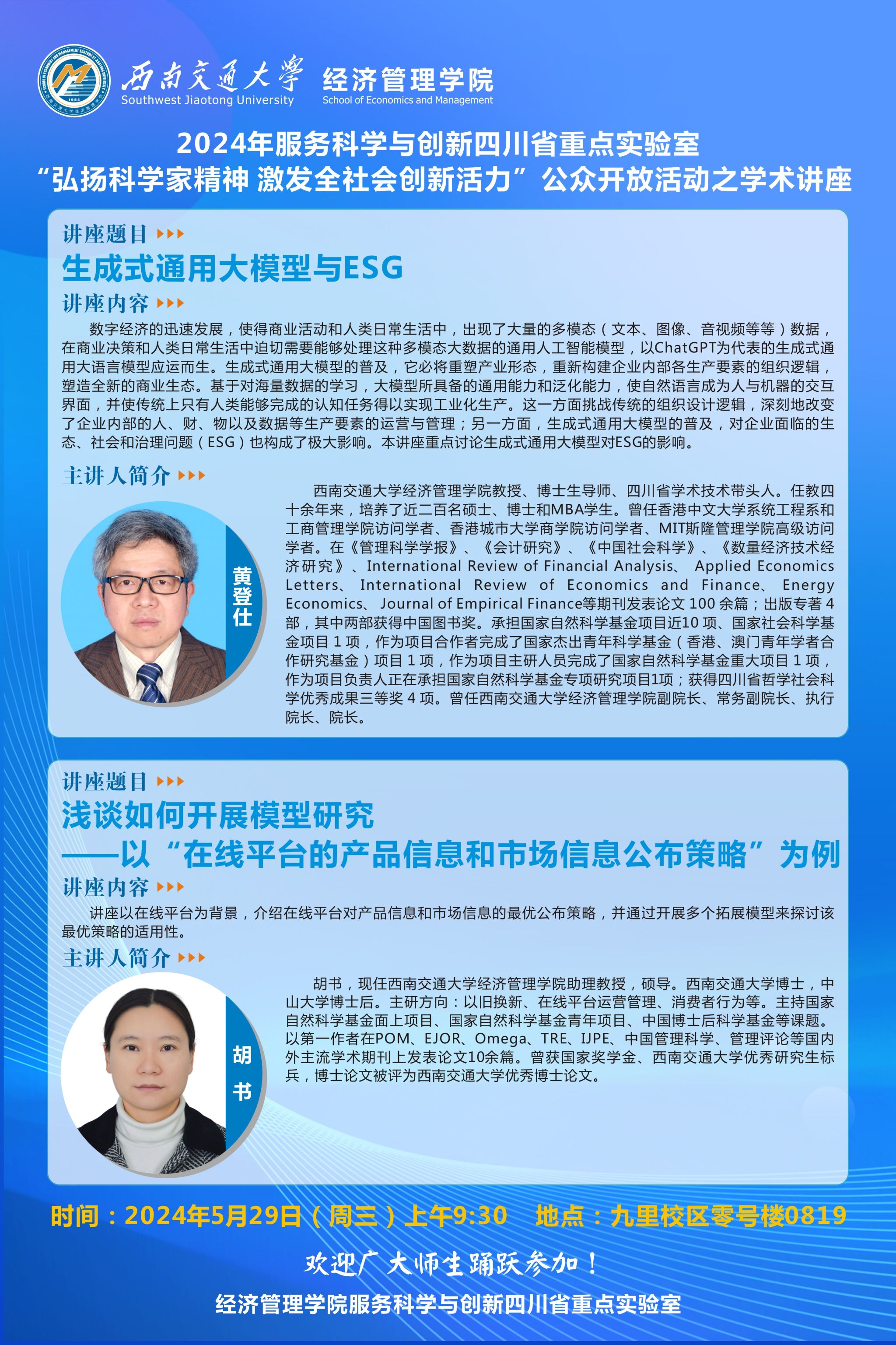 bat365官网登录入口黄登仕教授及胡书助理教授讲座