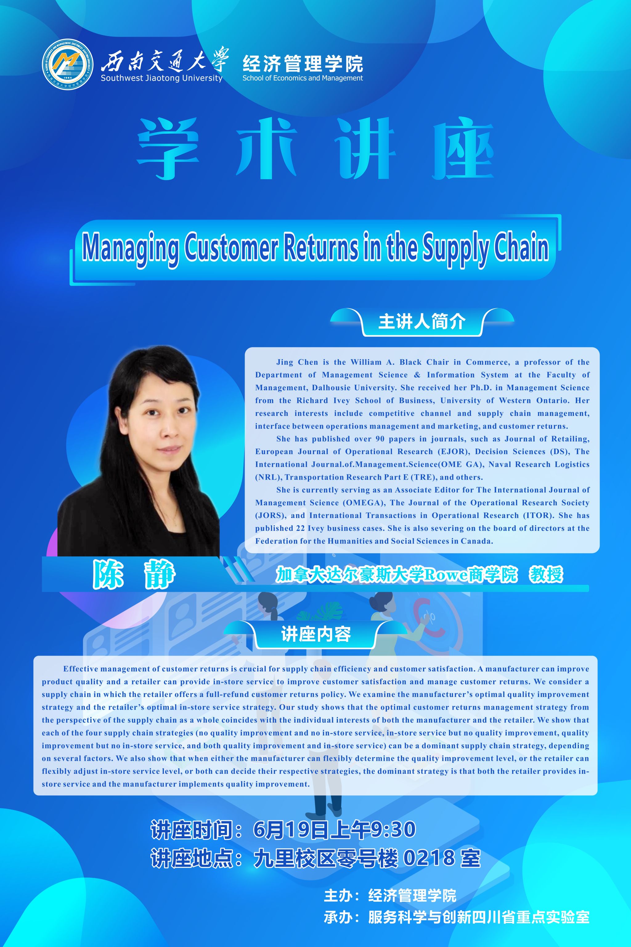 加拿大达尔豪斯大学Rowe商学院陈静教授学术讲座