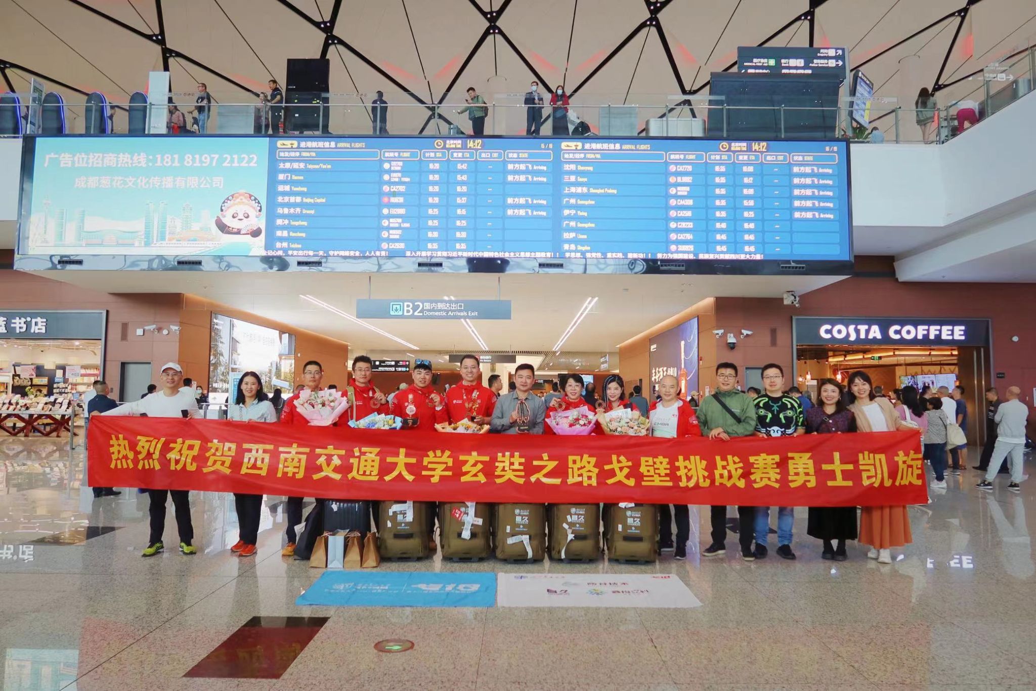 On October 6, Deputy Secretary of the School Party Committee Yan Libin, along with Professor Zhu Bo and other alumni, warmly welcomed and congratulated the victorious Ge 18 warriors at Tianfu Airport. They not only earned honor and dignity for the Southwest Jiaotong University School of Economics and Management but also contributed to the university's positive image.