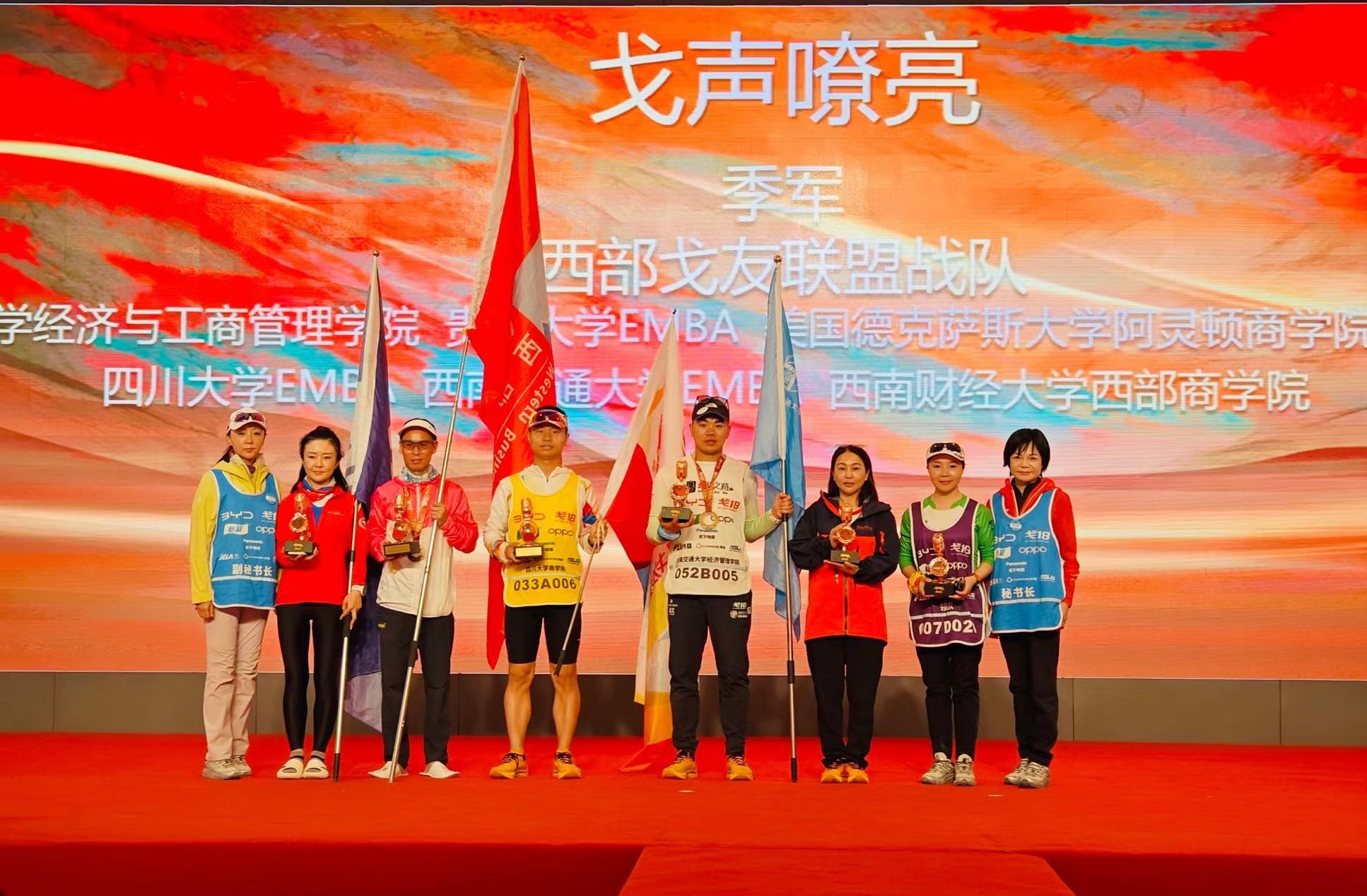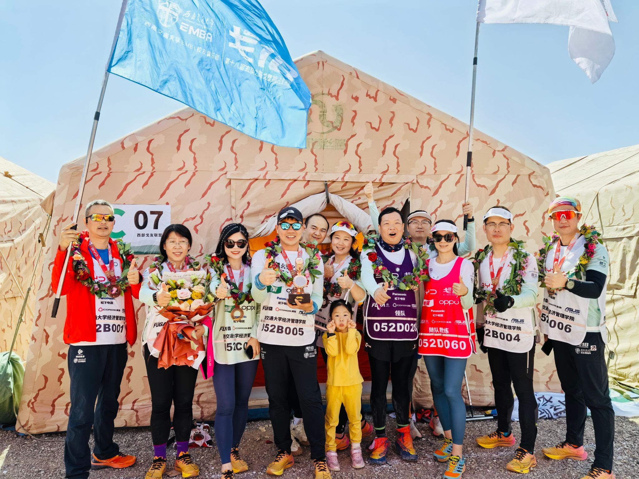 The Xuanzang Road Gobi Challenge is now in its 18th year, marking its "coming of age." This was the sixth time the Southwest Jiaotong University School of Economics and Management EMBA team embarked on this 800-mile journey through the Gobi Desert. To prepare for the challenge, team members started individual training and regular long-distance team exercises from June. Throughout the competition, they overcame various difficulties such as scorching heat, unfamiliar terrain, and gastrointestinal discomfort, earning a total of 7 individual gold medals. They watered the seeds of glory with their sweat.