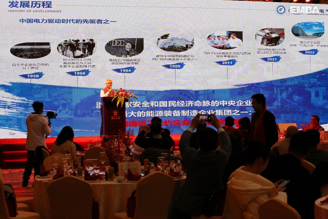 2009级EMBA校友、中国东方电气集团重大项目专员、东方电机有限公司党委副书记陈文学作题为《双碳背景下能源装备企业战略转型》的主题分享。他以国家《十四五现代能源体系规划》为出发点,强调在“双碳”背景下能源装备企业的使命是构建清洁、低碳、安全、高效的现代能源体系。他希望各位校友同学都能够紧紧抓住新能源发展的趋势,拥抱双碳、布局未来!