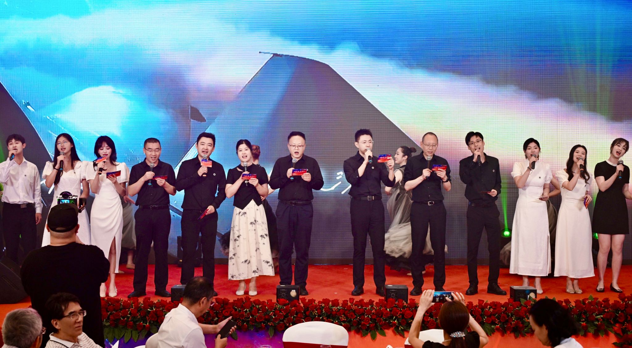 西南交通大学环境科学与工程学院党委书记、中国音乐家协会会员、四川省音乐家协会理事、成都市音乐家协会副主席、学院优秀院友甘霖带来的歌曲演唱《三峡情》诉说深刻情谊,晚会气氛在bat365师生的合唱歌曲《一路生花》中推至高潮。在西南交通大学校长助理宋新提议下,在座宾朋共同庆祝学院四十载光辉历程,期待学院更加璀璨的明天。