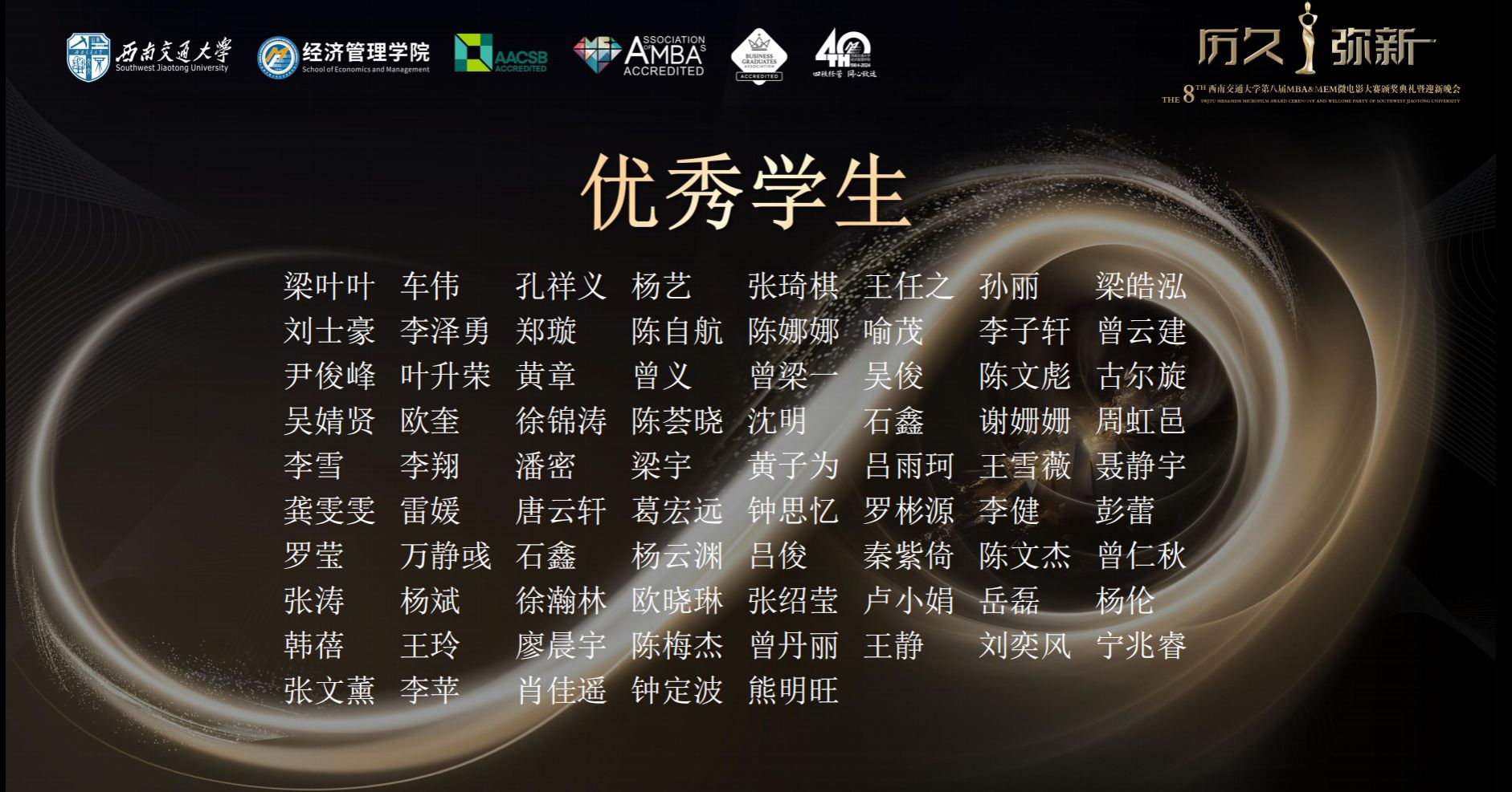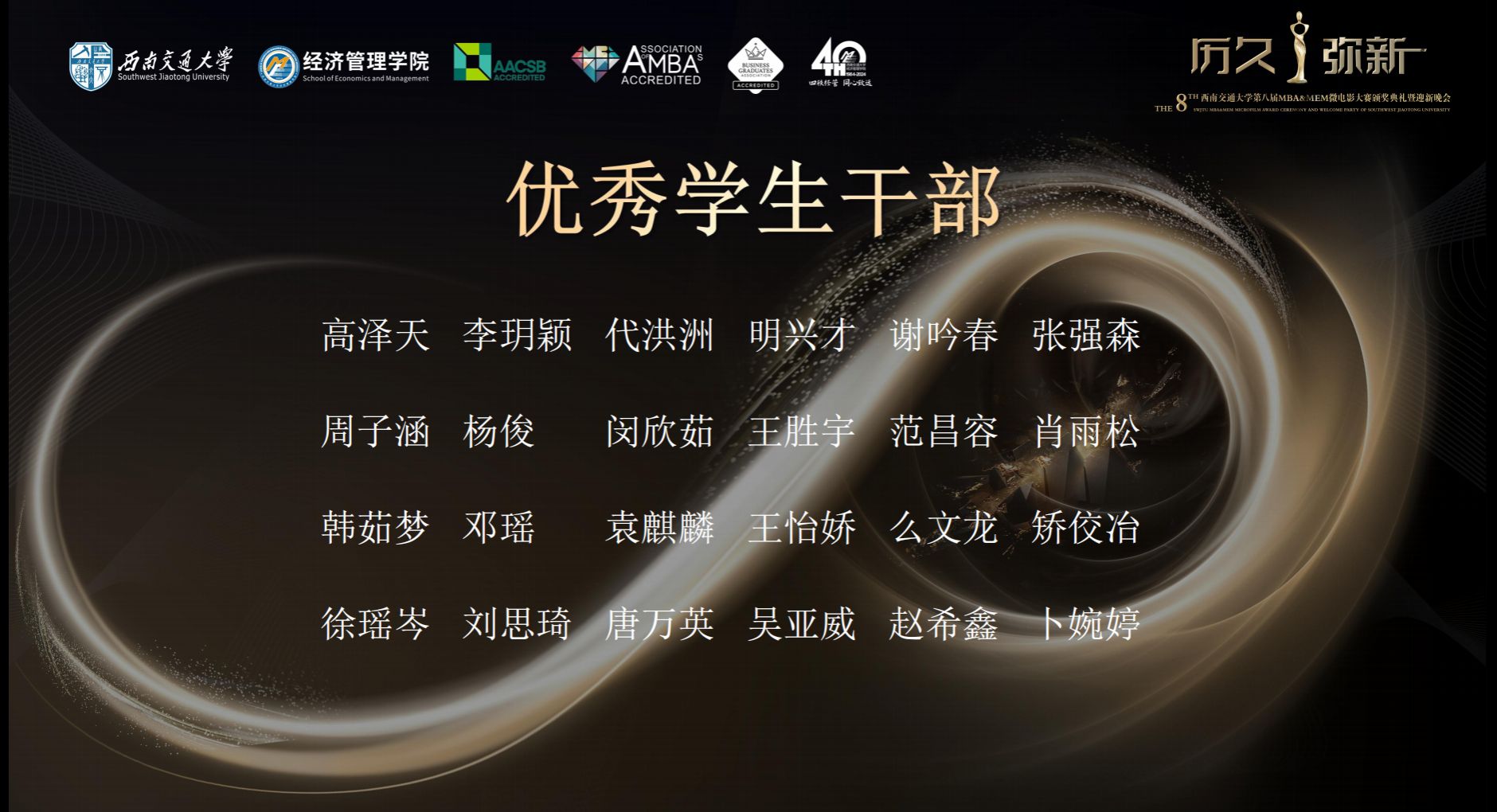 2024年11月30日晚,西南交通大学第八届MBA&MEM微电影颁奖典礼暨迎新晚会在九里校区5号楼国际会议厅璀璨启幕。