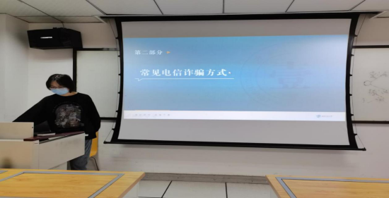 第三部分是向同学们讲解如何防范电信诈骗,通过PPT案例导入分析,向同学们传达了如何识别并防范电信诈骗。并教会同学们凡是提到钱就要引起怀疑,千万不能轻信那种来历不明的电话、短信,不要轻易透露自己银行卡、支付宝、微信等金融信息,如果有疑问的话,要及时拨打110,或者向亲友咨询核实。