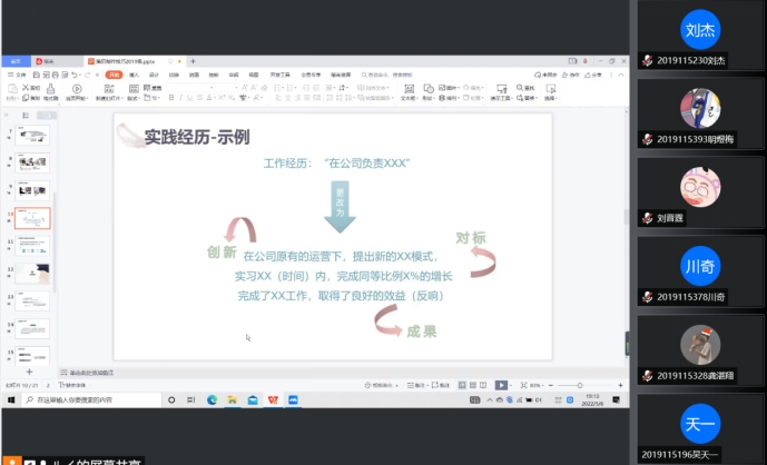 为了提升我院本科生简历制作能力,解决大家在撰写简历方面遇到的难题,2022年5月6日星期五晚上,面向bat365官网登录入口2019级本科生举办的简历撰写技巧分享活动在腾讯会议线上平台举行,本次讲座由本科2019级辅导员向起锐主持,本科2021级辅导员张先凌作为受邀嘉宾针对具体案例进行分享。