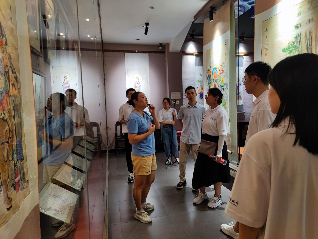 8月22日,团队成员再次前往年画村,在年画讲解员的带领下,学习年画知识,走遍年画村的大街小巷,对当地的民俗民风有更深的感悟。年画村中随处可见的绵竹年画形象,将传统的年画艺术与文化传承根植在一砖一瓦的年画村建筑之中,展露出年画村乡村振兴政策支持下的新面貌、新气象。