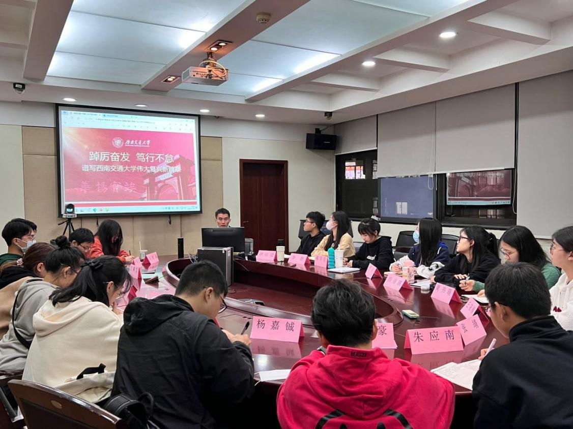 本次专题学习会围绕“学习党的二十大精神和学校第十五次党代会精神”来开展,由苏扬主持进行。首先,以“学习二十大精神,争做新时代先锋”为主题,围绕党的二十大报告内容,苏扬带领学生会全体工作人员共同学习了党的二十大精神。强调学生会在接下来的工作中要不断贯彻党的二十大精神,在投身于校园文化活动开展的实践之中,以优良作风和强烈责任感引领学生发展,争做青年朋友的知心人,做青年工作的热心人,做青年群众的引路人。随后,苏扬带领学生会全体工作人员学习了学校第十五次党代会精神,从学校建设、立德树人、科技创新、对外交流等多个方面学习了学校第十四次党代会以来取得的巨大成就,以及学校未来的办学思路、发展目标等,强调同学们要踔厉奋发,笃行不怠,共同谱写西南交通大学伟大复兴新篇章。