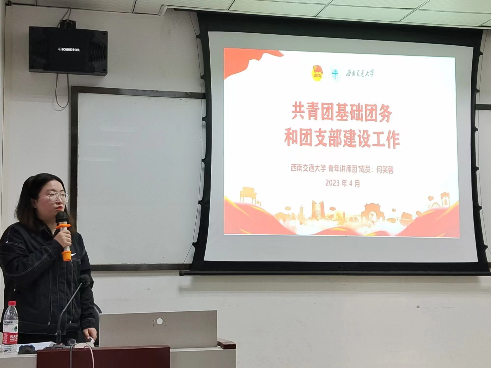 2023年4月13日晚,“星火经英”计划第十一期第五次团干部培训于J0316顺利举行。本次团干部培训由校团委组织部兼职团干部、西南交通大学学生会组织特设党支部书记何芙馨,西南交通大学外语协会九里分会会长、西南交通大学模拟政协社团团支书、本科公共2020-01班团支书杨溢主讲,主题为“共青团基础团务和新时代青年学生工作创新”,旨在帮助团干部们深入学习团组织的基础团务工作,加强创新意识,更好地建设班团组织。