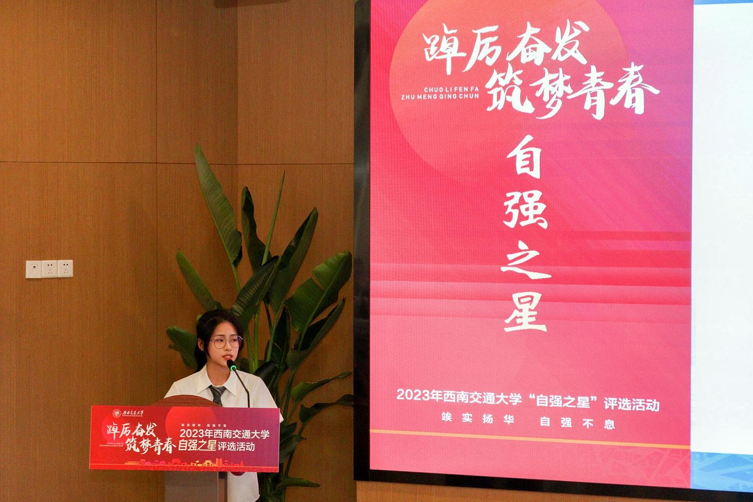 天行健,君子以自强不息。来自bat365官网登录入口的黄琬获得了2023年西南交通大学“自强之星”的荣誉称号。黄琬学习成绩名列前茅,竞赛成果突出,在学生工作方面也是有条不紊,让我们跟随我院经英传媒中心的记者的视角一起去了解她吧!