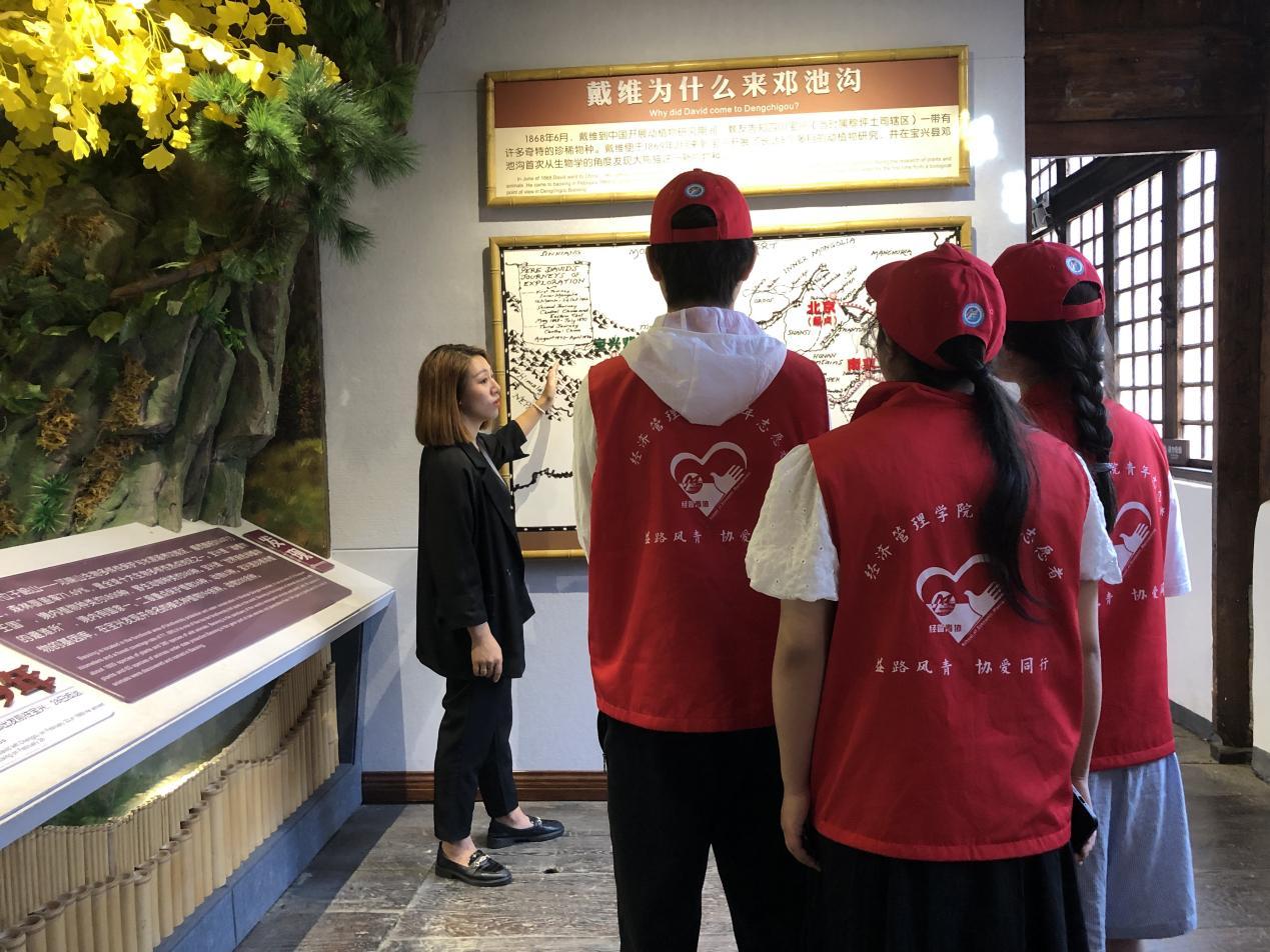 活动第四天,实践团队来到大熊猫科学发现地——邓池沟。邓池沟地处雅安市宝兴县蜂桶寨乡境内,拥有大熊猫发现最早、“国礼”大熊猫最多、珍惜野生动植物种类丰富等优势,是大熊猫国家公园重点建设地。结合宝兴县文化旅游产业发展现状,团队在邓池沟开展志愿服务和直播宣传,致力于推广大熊猫文化,焕发文旅产业生命力,为宝兴县“乡村振兴”注入更多源头活水。