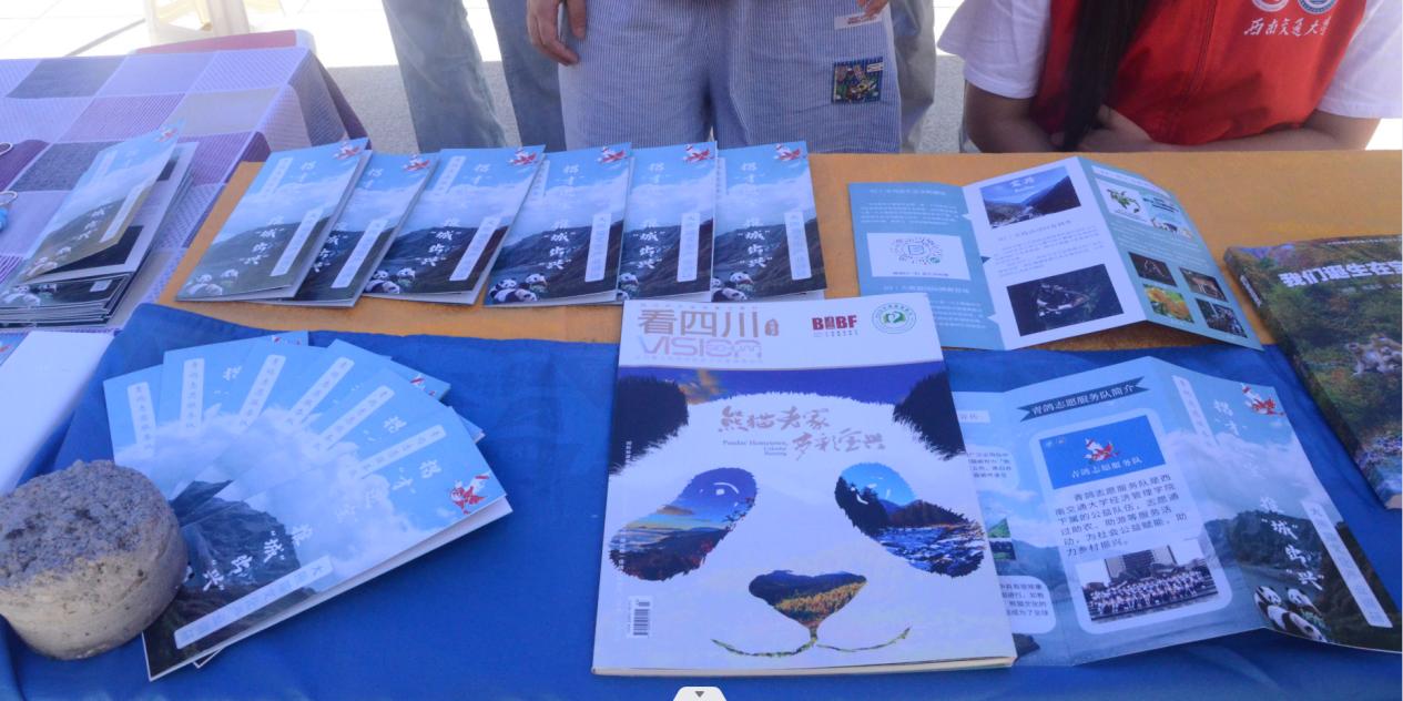 当天下午,团队就在宣传摊位上开设了有关大熊猫文化及动植物保护知识的宣讲,吸引了许多小朋友、藏族民众等附近居民的参与。团队成员向大家科普了大熊猫生活习性、野生动植物保护等相关知识,同时也发放了大熊猫文化的宣传册,通过增强当地居民对熊猫习性的了解和保护意识,植根当地大熊猫文化的内涵。