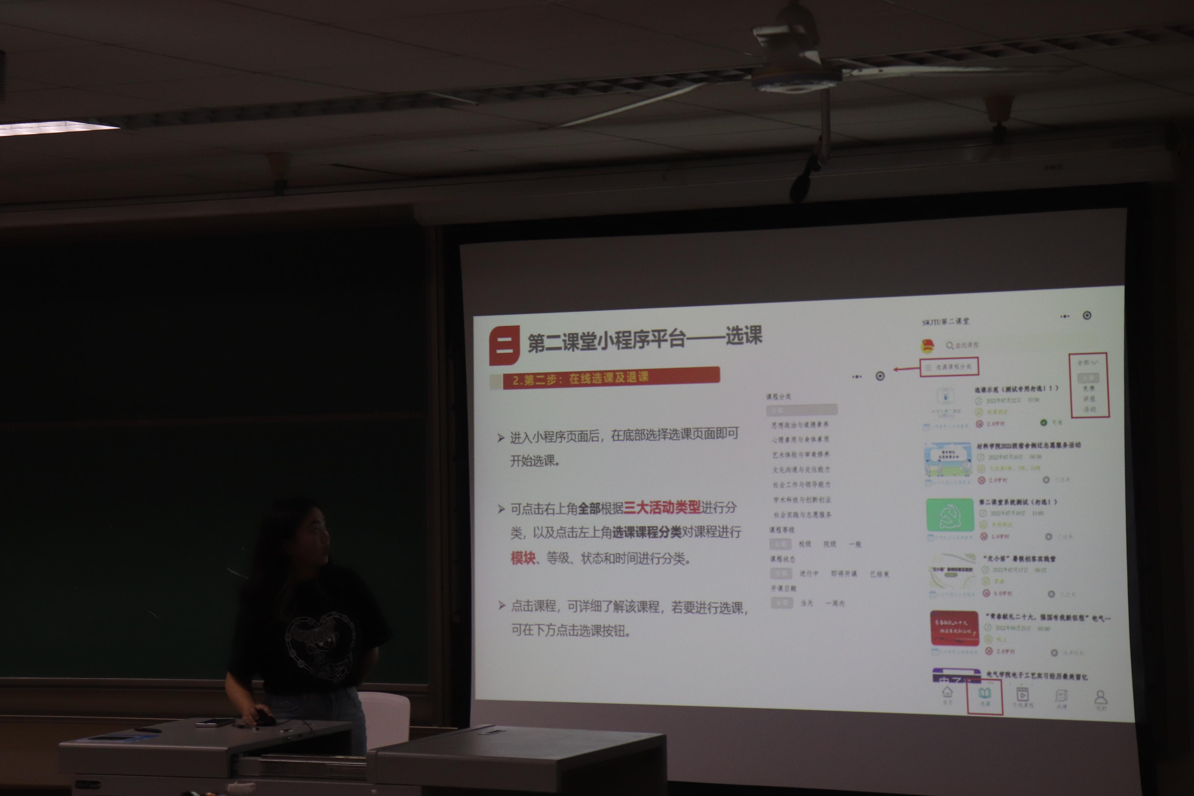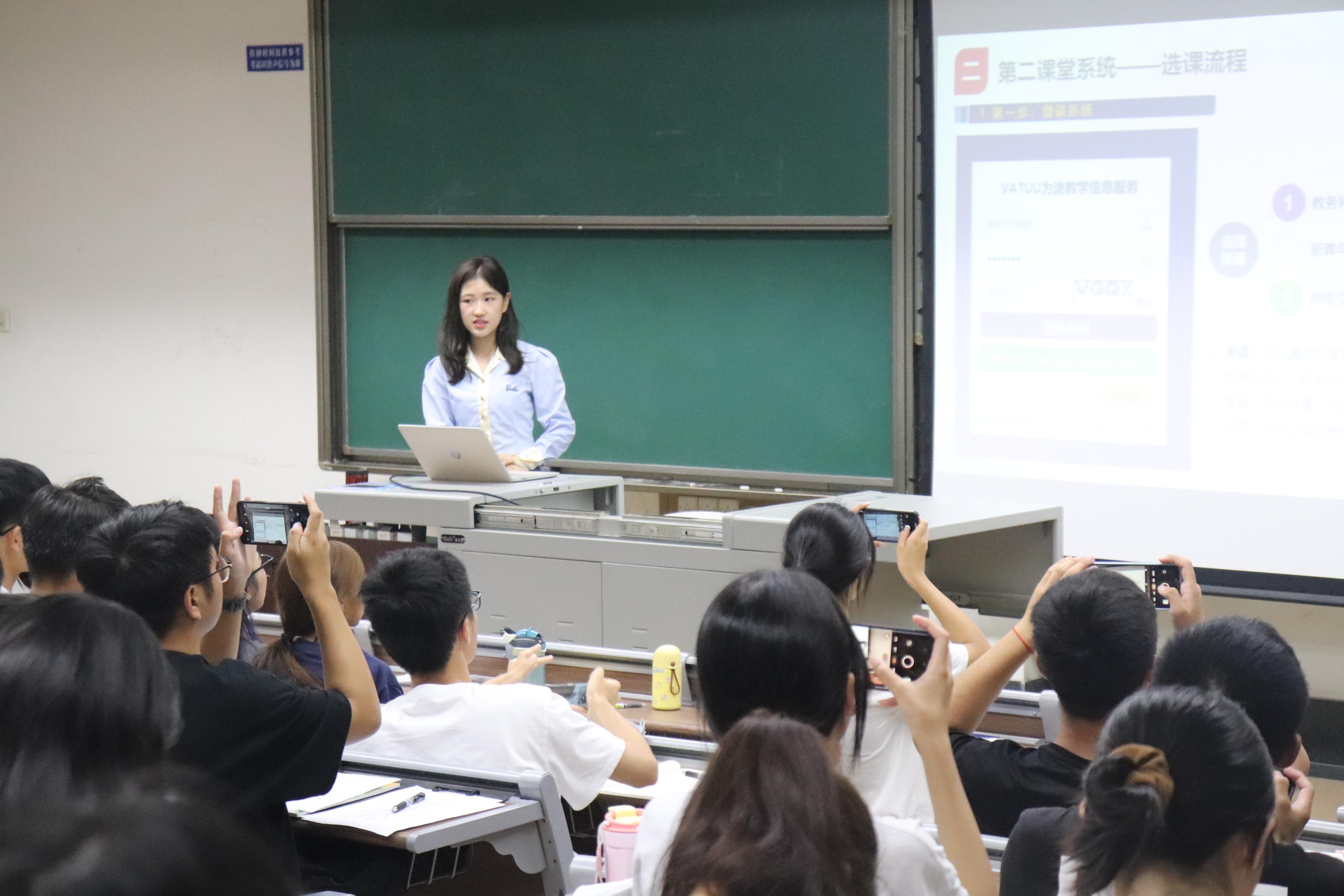 宣讲期间,学长学姐将大家带入到第二课堂的海洋中,介绍了第二课堂从注册到娴熟的使用以及其中的注意事项,同学们对学时的获得更加清楚。