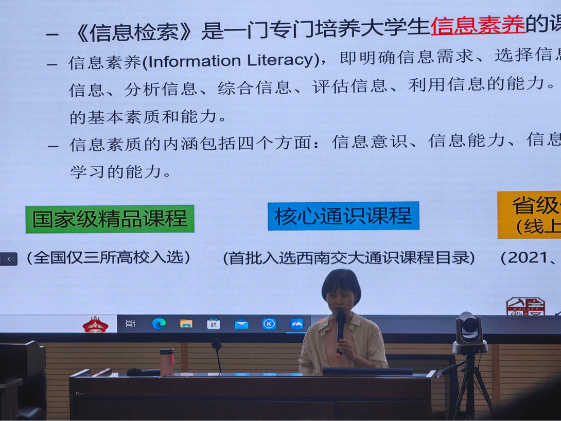 2023年9月25日晚,bat365官网登录入口本科2023级在九里校区J0202和J0215举行了图书馆入馆教育宣讲活动,本次宣讲由图书馆何雪梅老师进行主讲。何雪梅通过幽默的形式与详实的讲解,向同学们介绍了图书馆的概况、相关活动、图书馆的功能以及借阅纸质书籍和电子书的流程,旨在帮助同学们更好地利用图书文献资源。