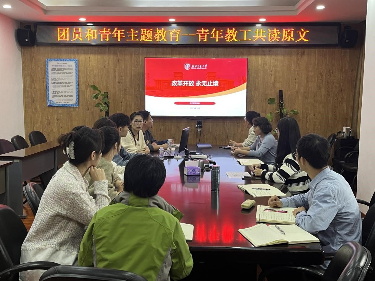 本次活动的主题是共同阅读习近平总书记于2012年12月在广东考察时的讲话《改革开放永无止境》。各位老师在仔细阅读了全文后,学院团委书记贾佳带领全体青年教师对讲话的背景、讲话内容中涉及的改革开放领域、改革开放的阻力以及如何推行改革开放等问题进行学习。