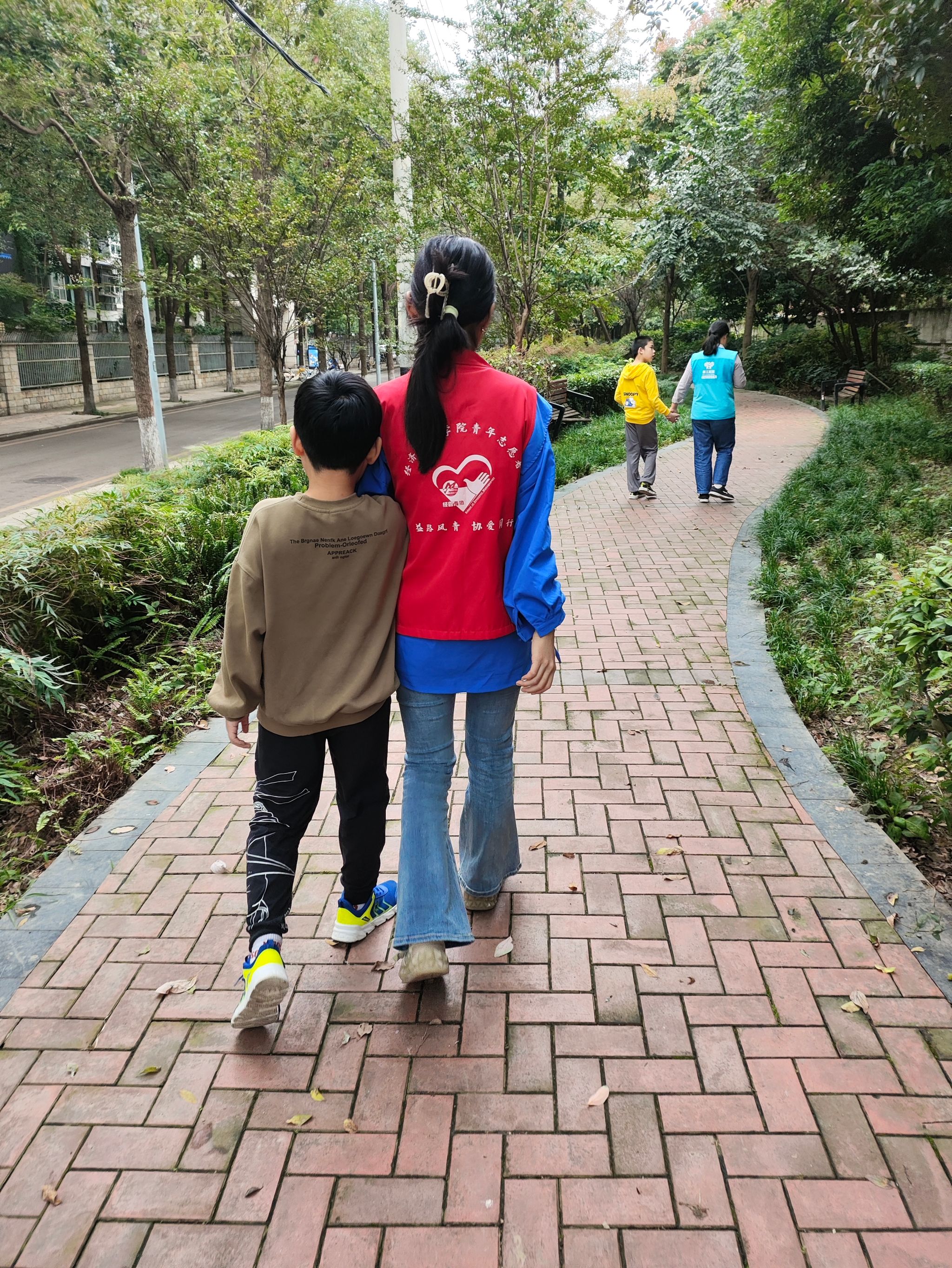 此次活动包括室内室外两个部分的内容。活动负责人与志愿者首先在室内安排了各项趣味小游戏,帮助志愿者与小朋友们交流沟通、熟悉彼此。游戏过程中,志愿者们深切感受到了他们的善意与温暖。在彼此之间稍作了解之后,大家有序移步室外花园。在善工家园老师的带领下,志愿者们指引并陪伴小朋友在园区内进行散步、锻炼。