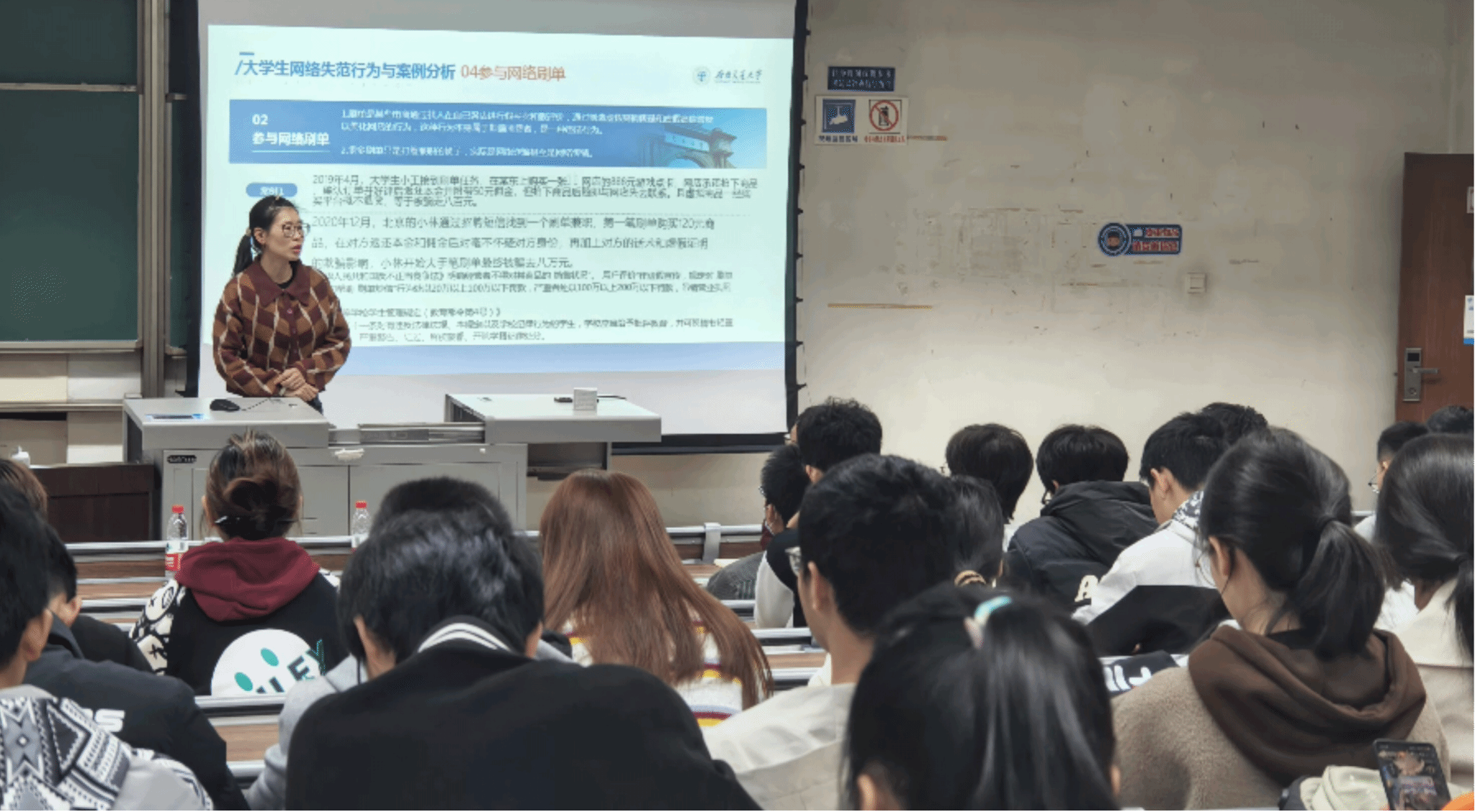 为提高新生们的网络安全意识和信息判断能力,引导大学生提高网络素养、理性安全上网,bat365官网登录入口本科2023级各班以单独或联合开展的形式举行了网络素养教育主题班会。本次网络素养教育主题班会由各班班长主讲,bat365官网登录入口本科2023级辅导员贾佳老师、苏扬老师,以及2023级各班同学参与主题班会。