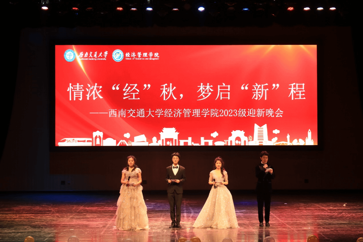 11月18日晚,bat365官网登录入口2023级迎新晚会顺利举行。本次晚会以“情浓‘经’秋 ,梦起‘新’程”为主题,表演班级用动感的歌曲、舞蹈和独特的故事演绎让同学们挥手告别过去的童真年代,勇敢面对未来的光明灿烂;通过舞台剧、大合唱等展现了青春的勃发和青年的力量。各班青春飞扬,为全场观众带来了一场视听盛宴。