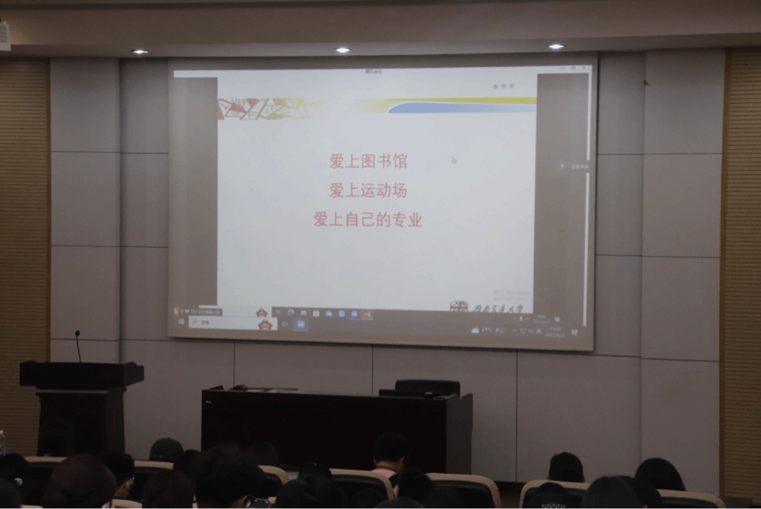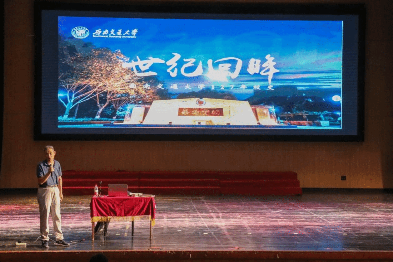 梁锦唐老师以“世纪回眸——西南交通大学127年校史”为主题,从交大的发展历程、光荣传统、交大精神等角度带领新生们回顾了交大辉煌的百年历史,增强了新生们的归属感和自豪感,也坚定了他们追寻梦想的信心与决心。