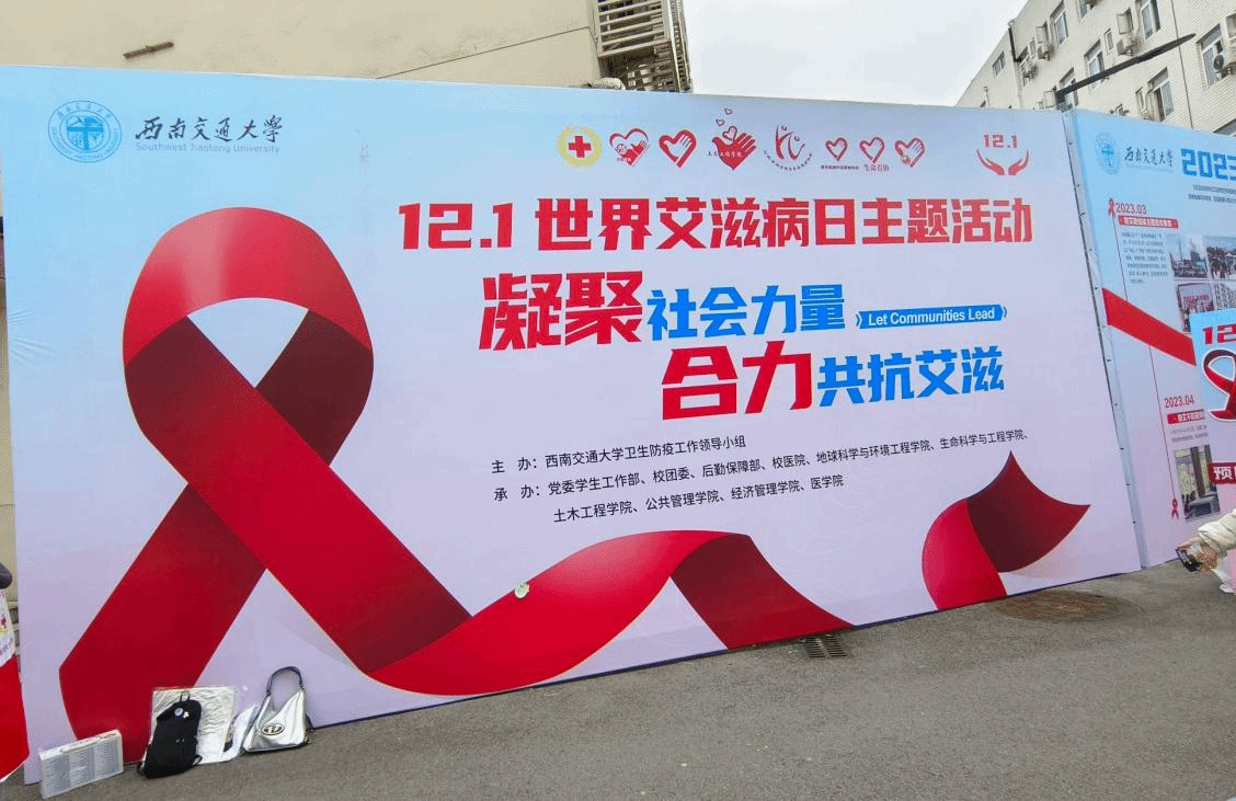 为营造良好的学校艾滋病宣传教育氛围,动员各方力量凝心聚力,共同抗击艾滋病,维护师生身体健康和生命安全,按照国家卫生健康委、国家疾病预防控制局、国务院防治艾滋病工作委员会办公室要求,结合学校艾滋病预防实际,由西南交通大学卫生防疫工作领导小组主办,bat365官网登录入口青年志愿者协会共同承办的“凝聚社会力量,合力共抗艾滋”世界艾滋病日主题活动,于2023年12月1日在学生宿舍10栋与11栋之间空地成功举办。