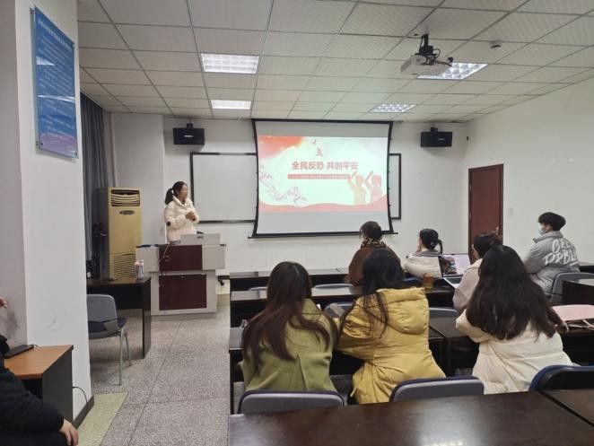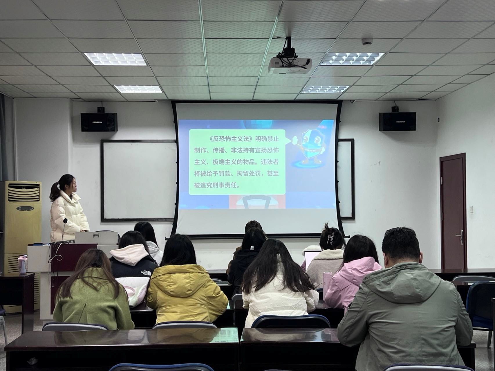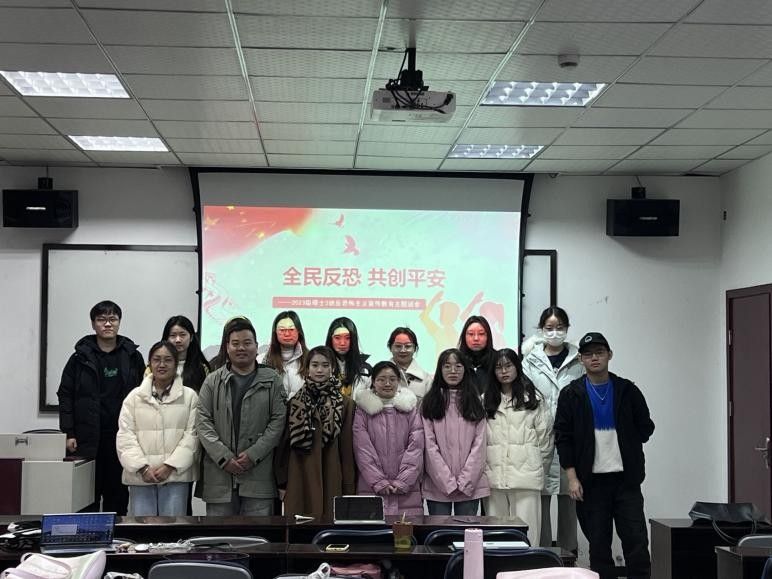为深入贯彻落实习近平总书记关于反恐怖工作的重要指示精神,切实提升班级同学反恐怖意识和能力,营造全校安全稳定良好氛围,12月15日,bat365官网登录入口23级硕士3班认真筹备,在0号教学楼0317顺利举办了认真学习《反恐怖主义法》专题班会,班会由班长肖晶晶与宣传委员丁洁共同主持,研究生辅导员李勇、班级全体同学参与。