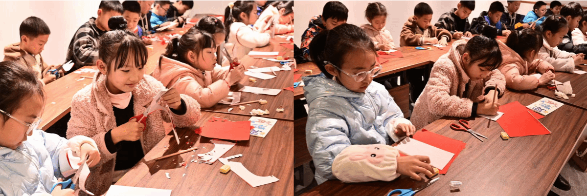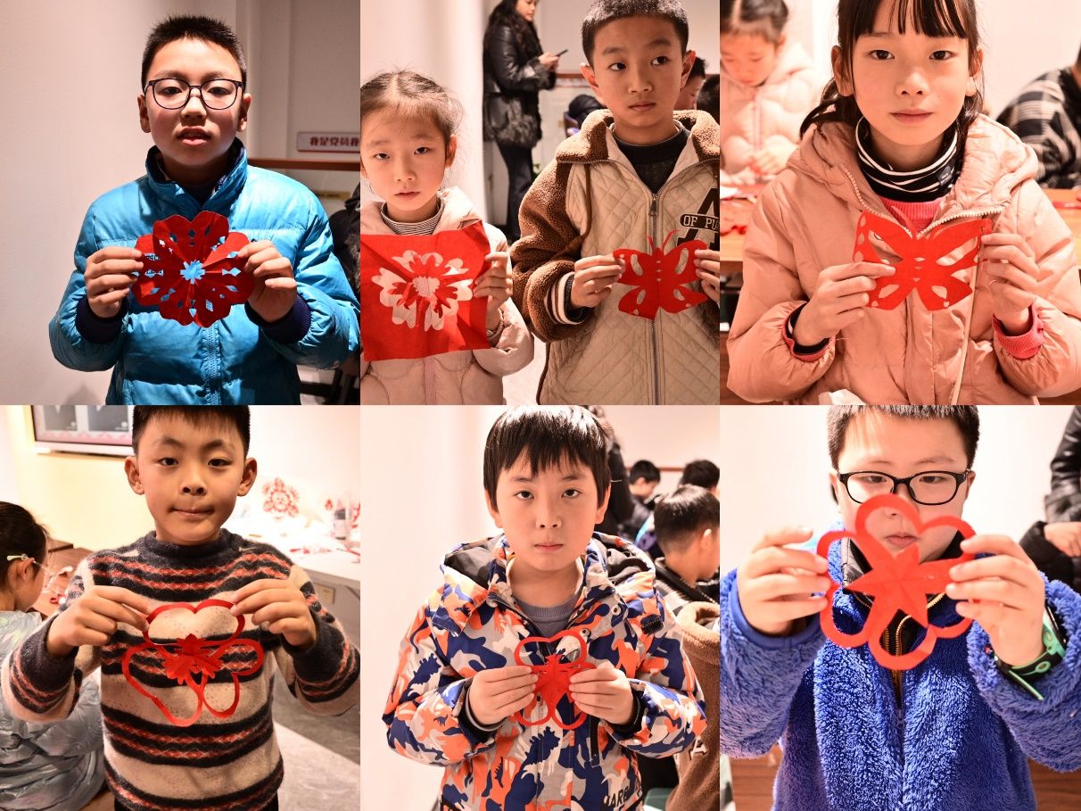 剪纸是中国的非物质文化遗产,贴窗花一直是我们中华民族延续至今的重要的民间习俗和艺术形式,其表达了人们对美好生活的期望。在“剪影行云”剪纸课中,实践队员带着孩子们认识剪纸的主要形式和意义,在感受新春佳节氛围的同时,也不断学习了解中华民族传统文化。实践队成员们和孩子们一起裁红纸,剪“春”字,引导孩子们尝试设计新的图案,不仅锻炼了他们的动手能力,也让他们体会到民俗文化的思想脉搏,学会用艺术的眼光探寻非遗的世界。