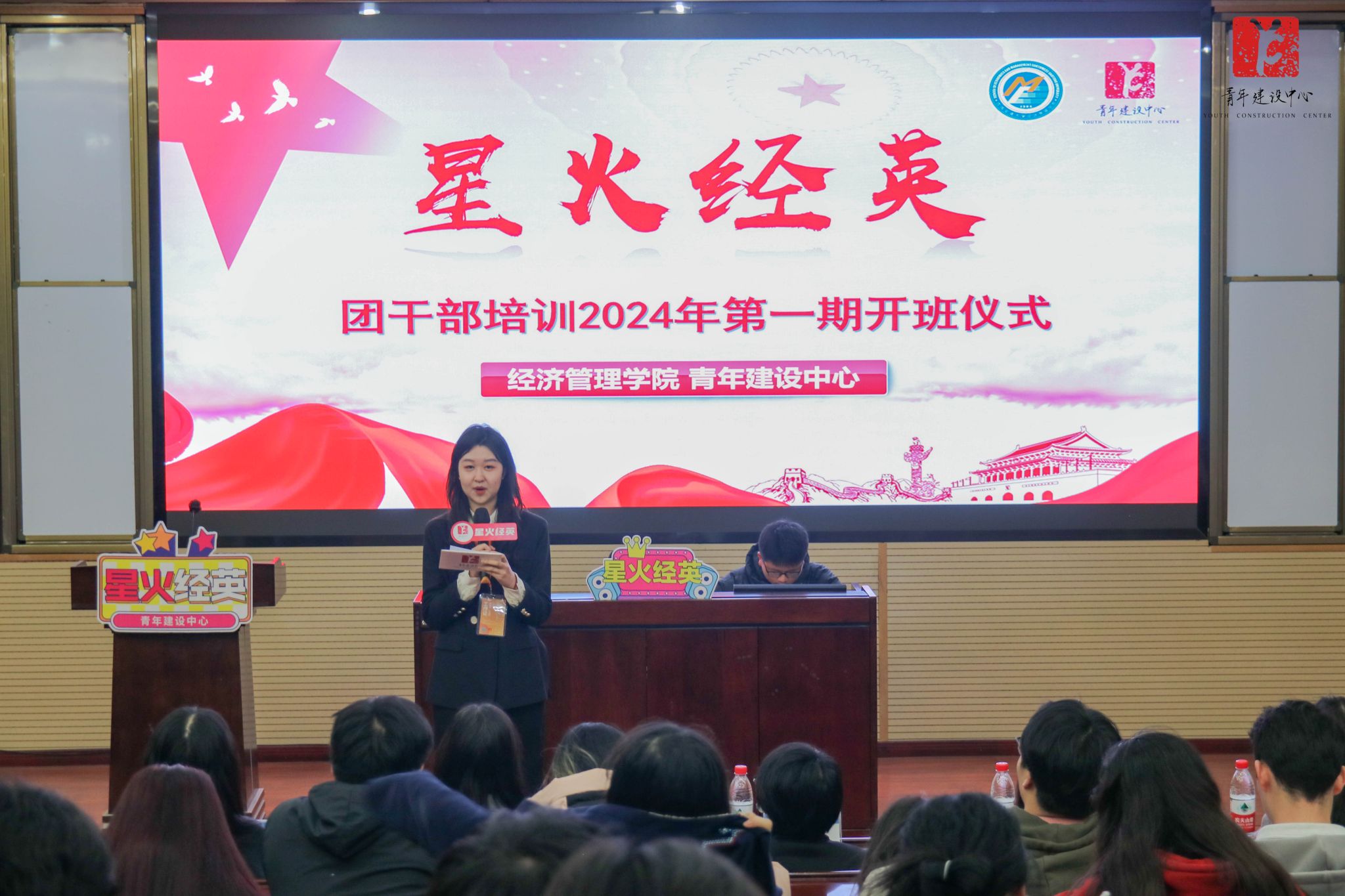 2024年3月7日晚,bat365官网登录入口开展了“星火经英”计划2024年第一期开班仪式暨第一次团干部培训。bat365官网登录入口党委副书记余小英,学院团委书记、学生工作组副组长贾佳,研究生辅导员、学生工作组副组长王哿,本科2021级辅导员、班级联合会指导老师张先凌,本科2021级辅导员、青年建设中心指导老师钟文婷,本科2022级辅导员、经营传媒中心指导老师薄慧出席本次活动。