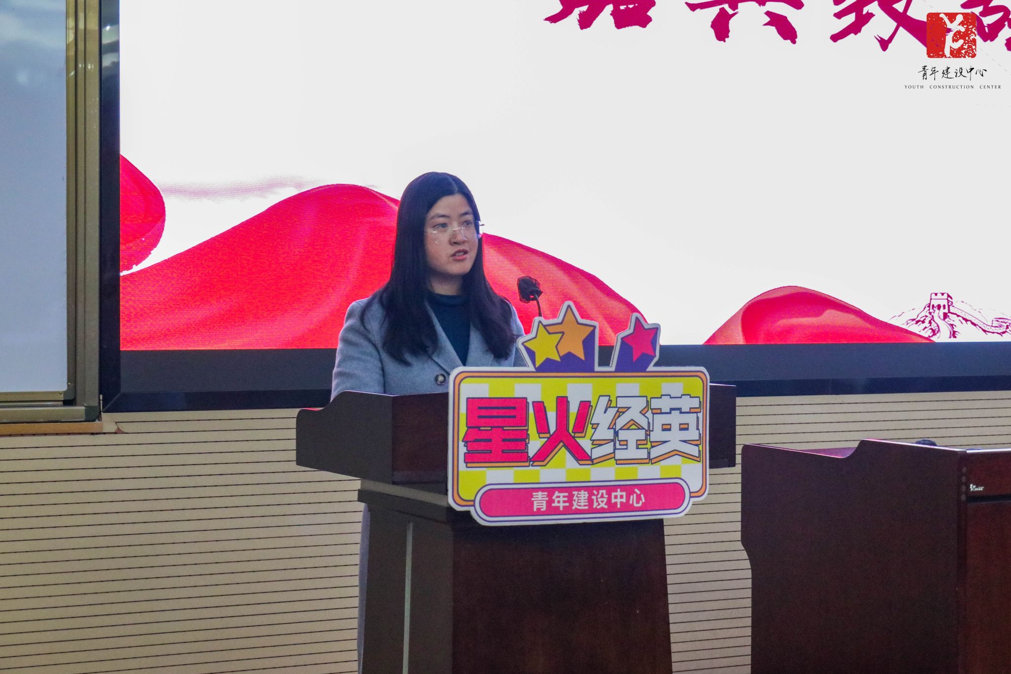bat365官网登录入口党委副书记余小英为本学期“星火经英”计划团干部培训开班仪式致辞,余小英老师希望参训团干部能在学习生活中博学笃志、读书立学,实事求是、躬行实践,团结互助,和合共进,充分发挥模范、带头作用。青年建设中心指导老师钟文婷对上一学期“星火经英”计划的开展情况进行总结与汇报。