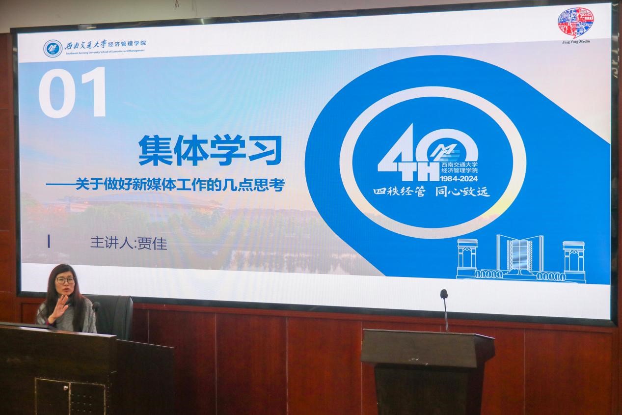 在团学组织新闻会议培训会中,经英传媒中心传媒事务部冯婉晴以“公众号‘交大bat365新青年’推文发布相关事宜”为主题,从推文写作要求讲解、推文发布安排、推文规范三个方面进行了详细全面的经验总结。对公众号、内容排版、头条安排等做了明确的要求,同时也对出现过的问题做出了总结及应对方案。