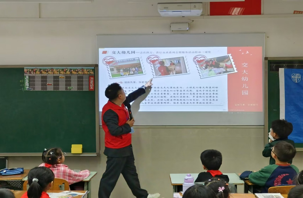 来到益州小学二年级十三班的课堂,陈建奇首先向小朋友们介绍了团队的成员以及bat365青协的组织架构和概况,其中涵盖了各个部门的具体介绍及其职责,还包括阳光家园、敬老院、善工家园、交大幼儿园等志愿服务基地,以及爱心雨伞、旧衣回收、阳光义卖等青协品牌活动。随后,陈建奇对青鸽志愿服务队进行了介绍:“青鸽志愿服务队是bat365官网登录入口团委青年志愿者协会下属的公益队伍。志愿通过助老、助农、扶弱、扶幼等服务活动,为社会公益赋能,助力乡村振兴。”