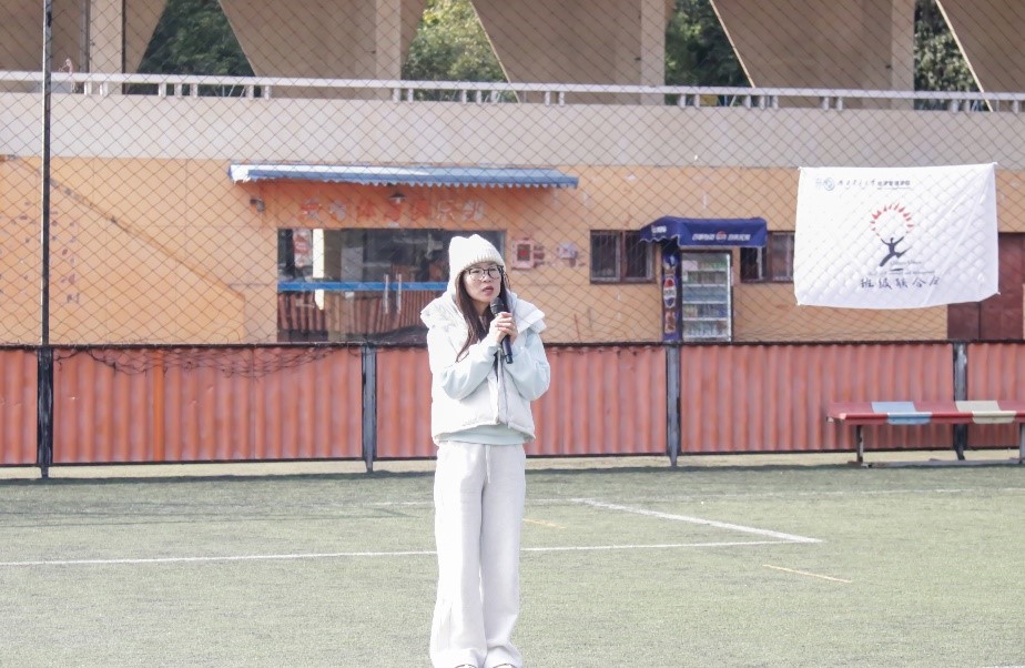 运动会正式开始之前,贾佳老师为本次活动致辞。她强调体育对于青年和国家的重要性,指出吾辈青年当以建设体育强国为目标,挥洒青春之汗水,融青春热血于时代洪流。同时,她希望同学们能够在运动会中做到“友谊第一、比赛第二”的比赛精神,在竞技的过程中,不忘彼此之间的尊重与合作,收获满满情谊。