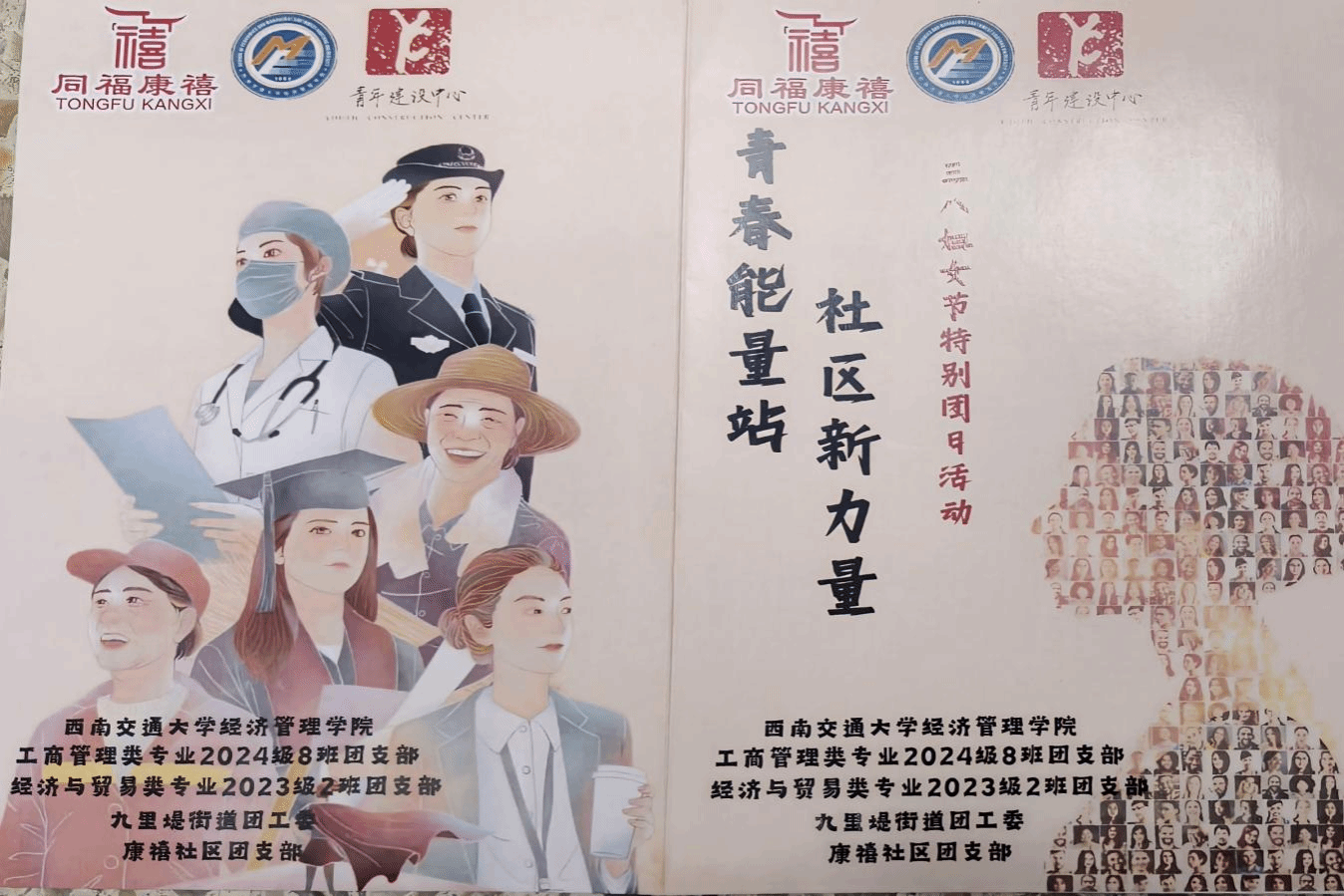 为庆祝“三八”国际劳动妇女节,深入学习贯彻党的二十大精神,3月8日,共青团bat365官网登录入口委员会和九里堤街道社区一起开展了“青春能量站,社区新力量——了不起的中国女性”,具体参与本次主题活动的是工商管理类专业2024级8班团支部和经济与贸易类专业2023级2班团支部以及康禧社区团支部。