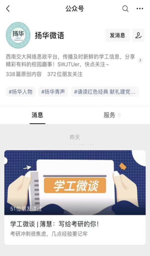 作为经英传媒中心的指导老师,薄慧以学院微信公众号平台为载体,积极开展学生网络思政教育,将学院宣传工作逐步体系化,构建学院网络思政新平台,在潜移默化中培育学生正确的世界观、人生观、价值观。在她的带领下,学院微信公众号平台成立党建专栏,培养学生爱党爱国爱校情怀,增强学生党支部的引领力、组织力、凝聚力、服务力;推出原创精品文章,引导学生发现大学生活的精彩,增强学生对校园文化的认同感;进行人物专访,展示交大bat365人的风貌,引导学生向优秀看齐;发布班团快讯,增强班级、团支部凝聚力,形成团结向上的优良风气。在笔触之下,照片之中,不断向每一位师生传递正能量,弘扬社会主义核心价值观。作为学院宣传工作的重要承担者,经英传媒中心也在薄慧的带领下努力成长为一个符合新时代要求的新媒体,扎实做好学院的各项宣传工作,2021年获“优秀校园媒体”荣誉称号。
