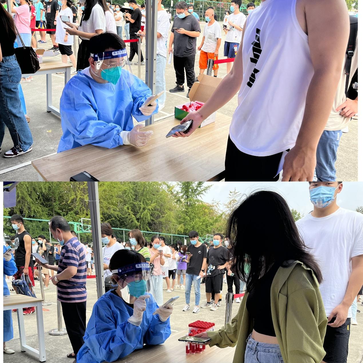 上门排查登记疫苗接种情况、引导同学们有序就餐、维持核酸检测队伍秩序 |