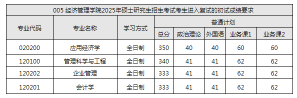 第一志愿报考我院各专业非专项计划的考生,初试成绩达到下表中对应专业的成绩要求,方才具备复试资格。