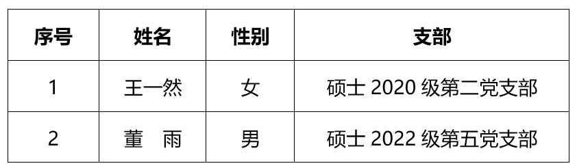 根据《中国共产党发展党员工作细则》、《中共西南交通大学委员会发展党员工作实施细则》等相关条例,经过党支部全面了解、考察,并经院党委审核,拟批准以下2位预备党员按期转为正式党员,现予以公示。