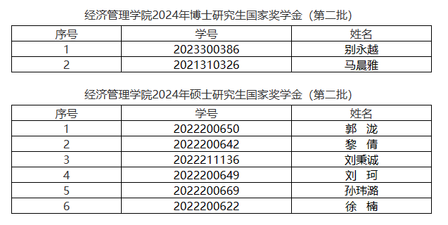 根据财政部、教育部、人力资源社会保障部印发《关于调整高等教育阶段和高中阶段国家奖助学金政策的通知》(财教〔2024〕181号),《关于做好2024年秋季学期普通高校国家奖助学金工作的通知》(教助中心〔2024〕31号)及我校《西南交通大学研究生国家奖学金管理办法》(西交校研[2022]18号)等文件精神,bat365官网登录入口参照《bat365官网登录入口研究生国家奖学金评选实施细则》,本着公平、公正、公开的原则对第二批提交申请的研究生进行了资格审核、公开差额答辩环节,按学校第二批下拨指标最终确定bat365官网登录入口2024年研究生国家奖学金(第二批)获奖名单。现公示如下:
