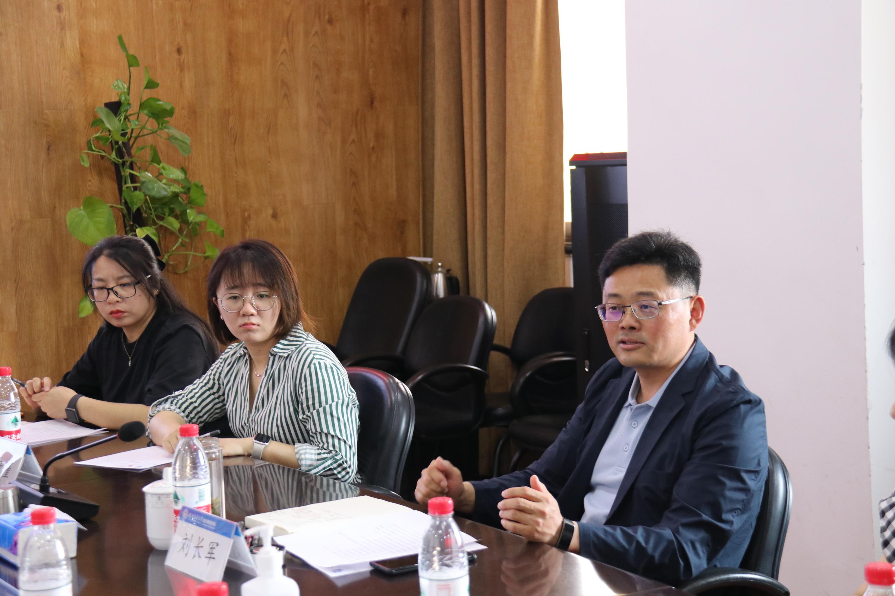 王斌首先代表学院热烈欢迎刘长军副校长莅临学院调研指导工作。郭强代表学院向刘长军副校长汇报了学院的基本情况、学院特色发展的思考与规划、近期主要工作情况以及存在的问题等内容,说明了学院在人才培养、师资队伍建设、科学研究、社会服务与国际化办学以及业务发展瓶颈等方面的情况。