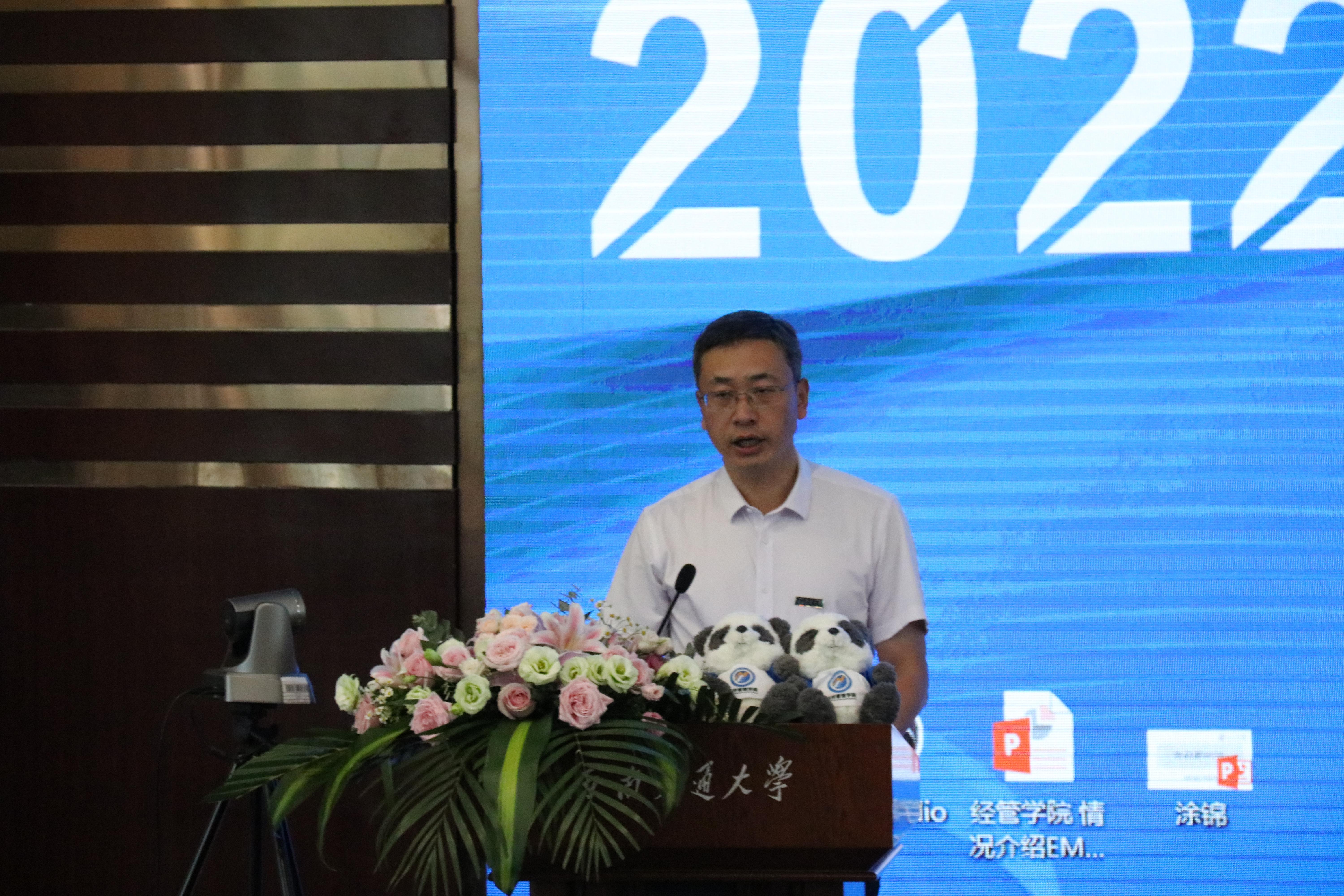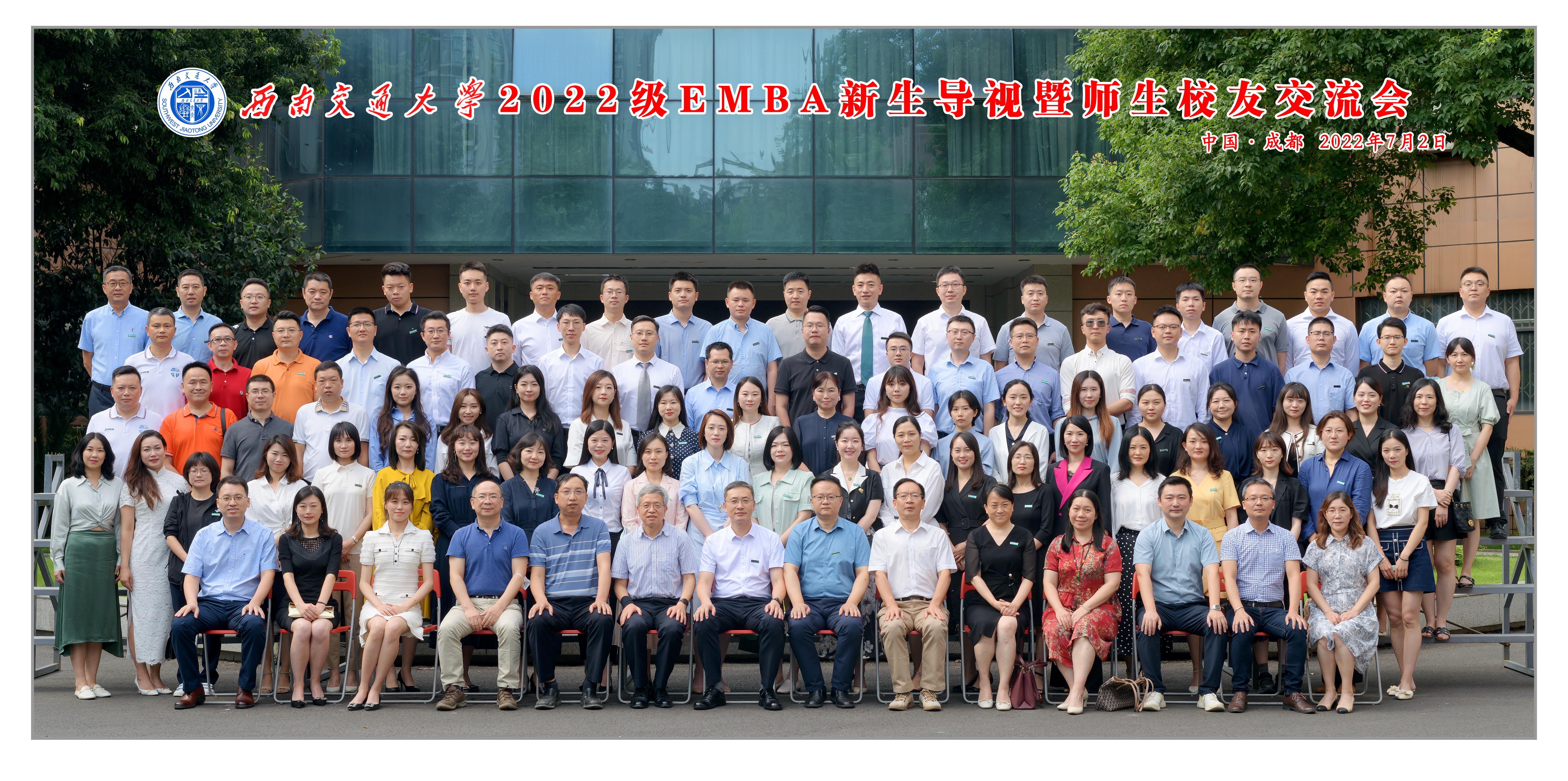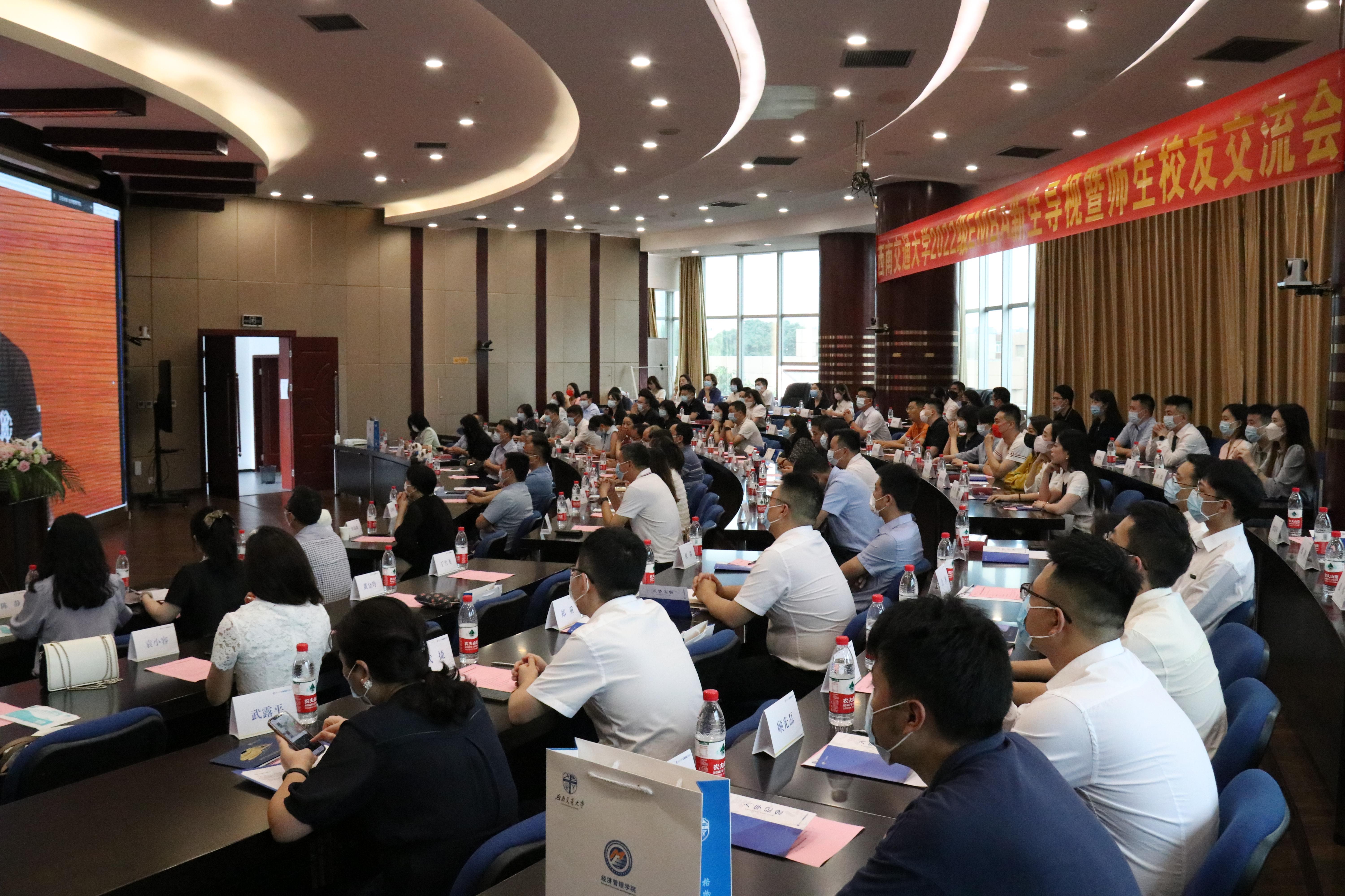 2022年7月2日下午2点30分,西南交通大学2022级EMBA新生导视暨师生校友交流会在九里校区举行。2022级EMBA全体新生,bat365官网登录入口党委书记王斌、执行院长郭强,教师代表黄登仕、涂锦、叶勇、官振中、高增安、陈有真,学院工会主席兼综合事务办公室主任晏理斌,学院党委党务秘书李洪辉,学院专业学位教育中心主任李海波、副主任何鹏、副主任诸波,学院国内合作与校友事务中心副主任张笑芸,学院专业学位教育中心办公室主任陈静,学院综合事务办公室岳容华,2022级EMBA班主任黄金玲、宋洁,学院专业学位教育中心袁小容、姚霁芸以及往届EMBA校友代表等欢聚一堂,共启新程。
