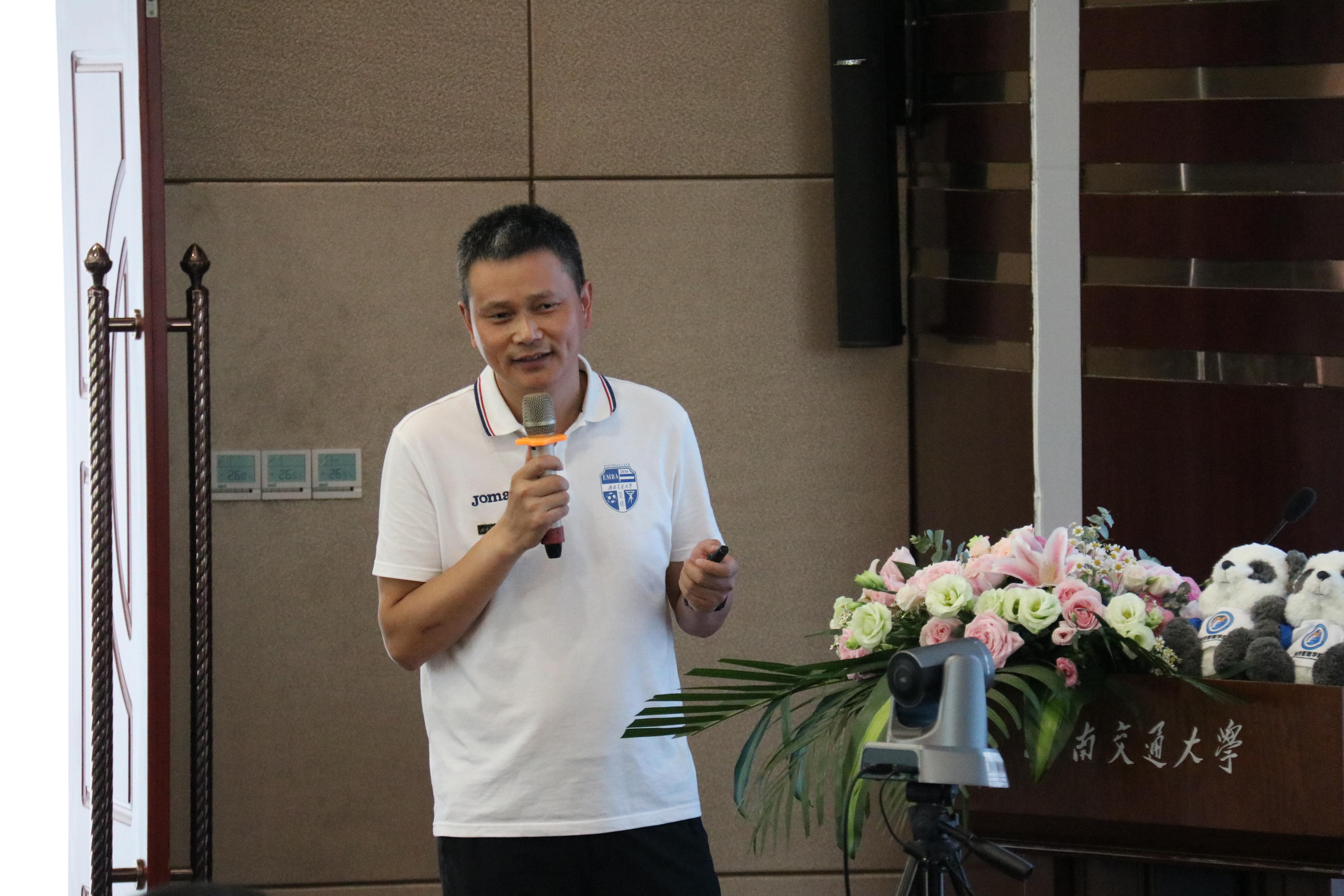 西南交大EMBA校友会开展了招新仪式。龙贤明会长对EMBA校友会做了简要介绍,爱心互助、戈友、羽毛球、足球4个俱乐部的负责人依次做了精彩的招新介绍,激发了新同学对学校极大的自豪感以及对于未来发展的期待。他们将在未来两年学习生活中找到工作、学习、生活的最佳平衡点,通过校友会俱乐部活动增进同学之间感情,让EMBA校友会成为链接同学与学校之间的坚强纽带。