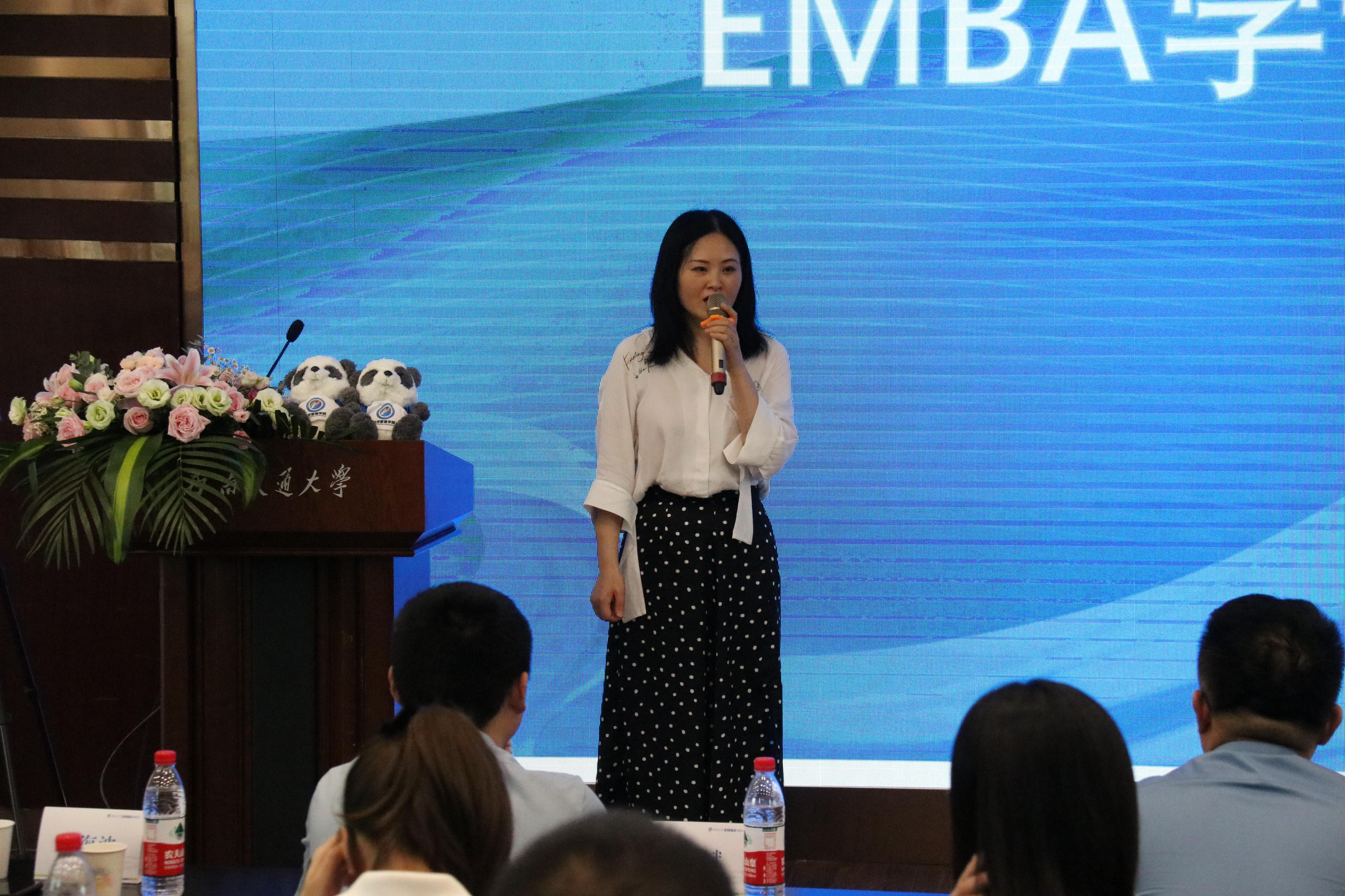 EMBA校友王雪飞在发言中送给师弟师妹们一个词——坚定,希望大家坚定学习信念,让不断学习成为习惯,珍惜每一次学习和课外活动机会,拓展自己的连接数量和质量,收获学校学习知识和锤炼品格的宝贵财富。