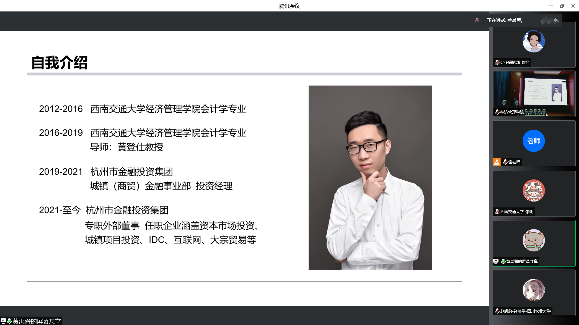 在bat365官网登录入口副院长周嘉南教授的主持下,蒋教授为大家带来了“财智与投资”的学术讲座,带大家领略了金融的实用性。同学们与蒋教授进行了热烈的讨论。学院研究生教育中心主任马锋副教授为大家带来了学院学科、学术型硕博生培养情况的介绍。他从学科建设、学术型硕士培养、博士研究生培养等角度,全方位为大家展示了bat365官网登录入口的研究生培养工作。