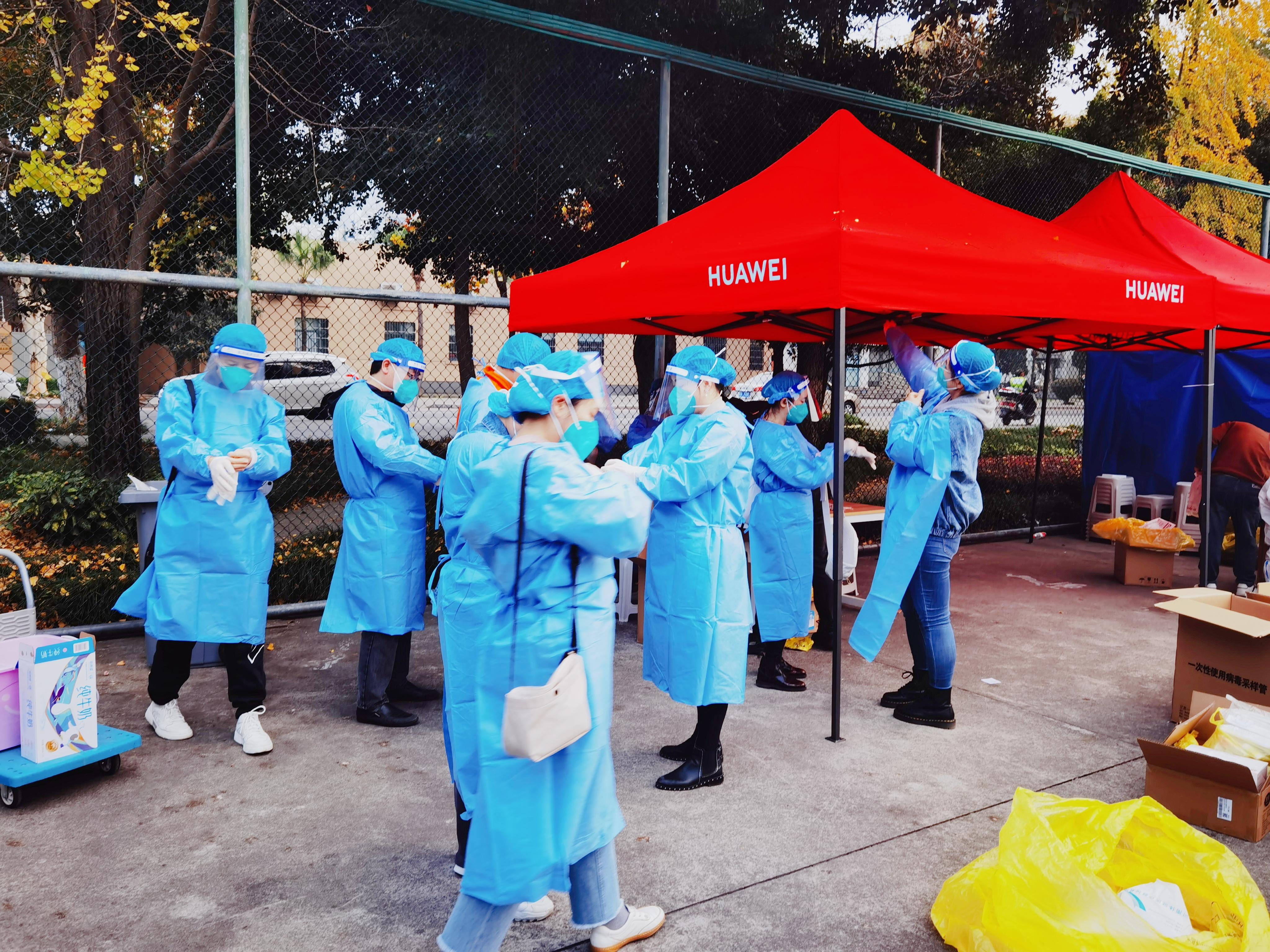 bat365官网登录入口通过教职工个人报名、学院党委推荐,组织了13名教职工再次担任11月24日九里校区校内核酸检测工作志愿者,协助核酸采样工作。到场参与核酸检测志愿服务工作的老师有:何鹏、罗伟民、崔长江、何建晖、尹一、漆敏、练婧曦、姚霁芸、张媛媛、王熙、向洪信、滕倩、宋洁。24日清晨7点30分,天刚蒙蒙亮,志愿者们准时到达九里校区篮球场核酸检测点,有序地领取防护物资,互相帮助完成防护服的穿戴,认真听工作人员讲解,统一学习操作流程,做好各项准备工作。