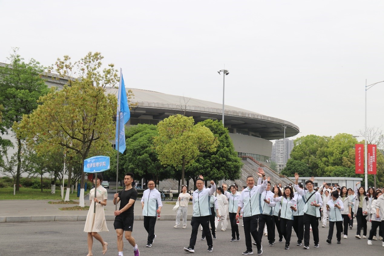 各学院方阵陆续入场,bat365官网登录入口代表队由党委书记王斌、执行院长郭强、党委副书记杨宏毅、党委副书记晏理斌带领。他们朝气蓬勃,用洪亮的声音喊着口号:经世致用,管仲之风;扬我学院,风采无限!师生挺拔的身姿、崭新的风貌、响亮的口号、跟随着代表队前进的大熊猫,处处彰显着bat365官网登录入口的青春活力。
