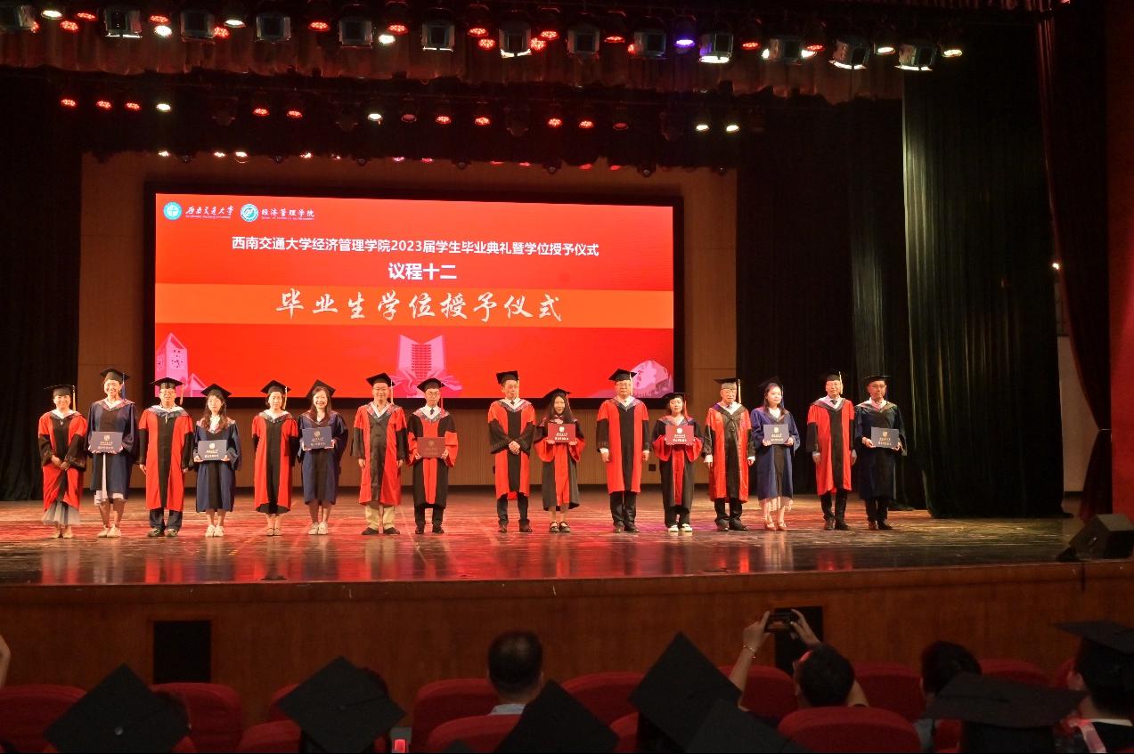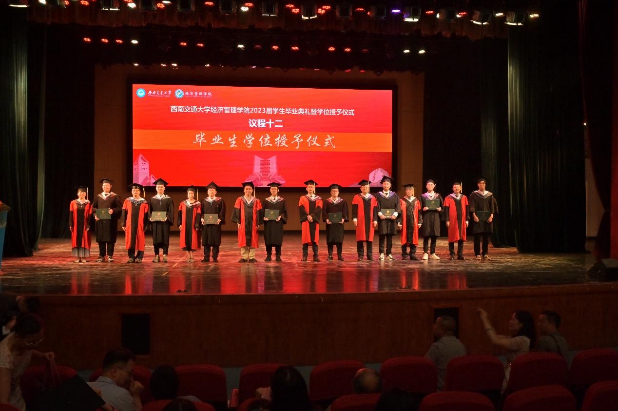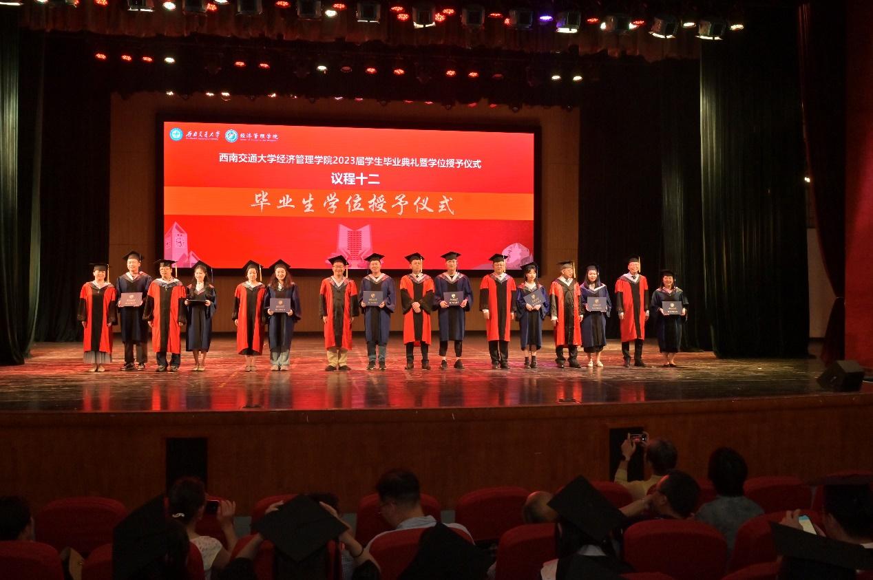 万众瞩目的学位授位仪式,由学院学位评定分委会委员为全体毕业生们授位。在悠扬的音乐声中,我院2023届全体毕业生依次上台,学院学位评定分委会委员为毕业生拨穗和颁发学位证书,并合影留念,将典礼的气氛再次推向高潮。