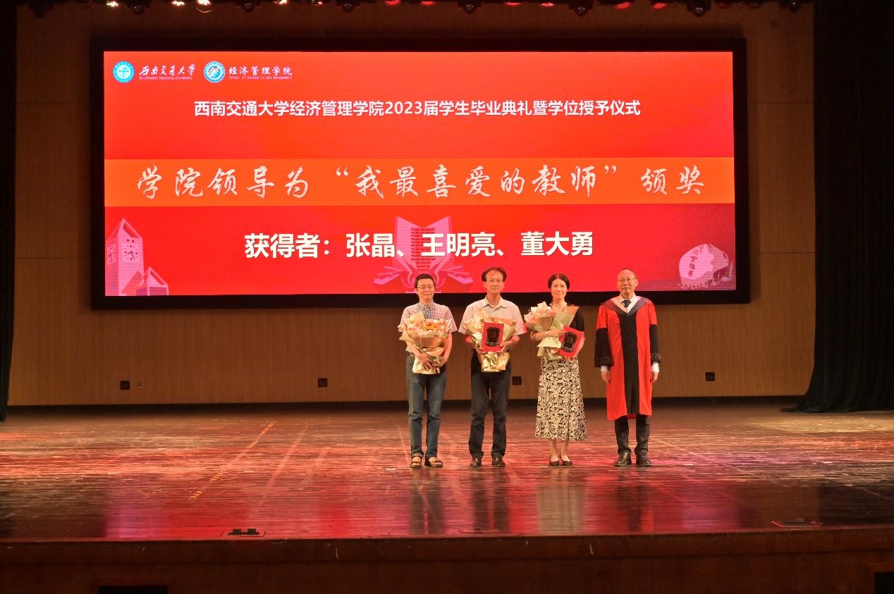 学院副院长李良宣读我院2023届本科毕业生评选的“我最喜爱的教师”名单,获得者是:张晶老师、王明亮老师、董大勇老师,并由王明亮老师作为教师代表为2023届毕业生致临别寄语。他在发言中,回顾了与同学们共同走过的39年风风雨雨,分享了陪伴同学们成长的点点滴滴,希望同学们在将来仍要积极努力,一定要做一个对社会、对集体、对家庭有责任感的人,彰显我们交大bat365新青年的大格局、大情怀、大担当。