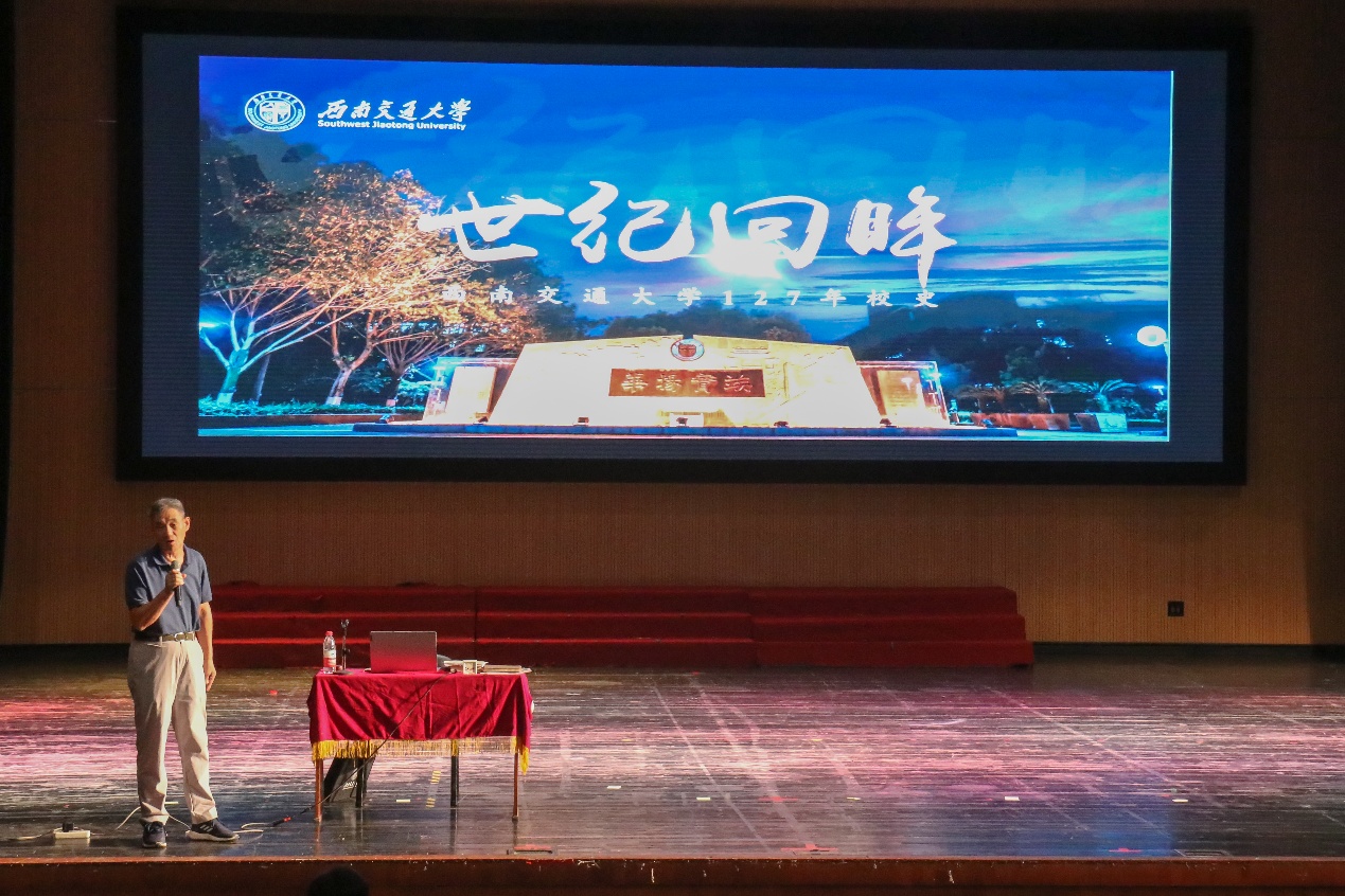 典礼结束后,梁锦唐老师以“世纪回眸——西南交通大学127年校史”为主题,为新生们带来了精彩的开学第一课。岁月无声,历史有痕,梁老师从交大的发展历程、光荣传统、交大精神等角度带领新生们回顾了交大辉煌的百年历史。讲座结束后,现场响起了热烈的掌声,梁老师的讲座增强了新生们的归属感和自豪感,也坚定了他们追寻梦想的信心与决心。