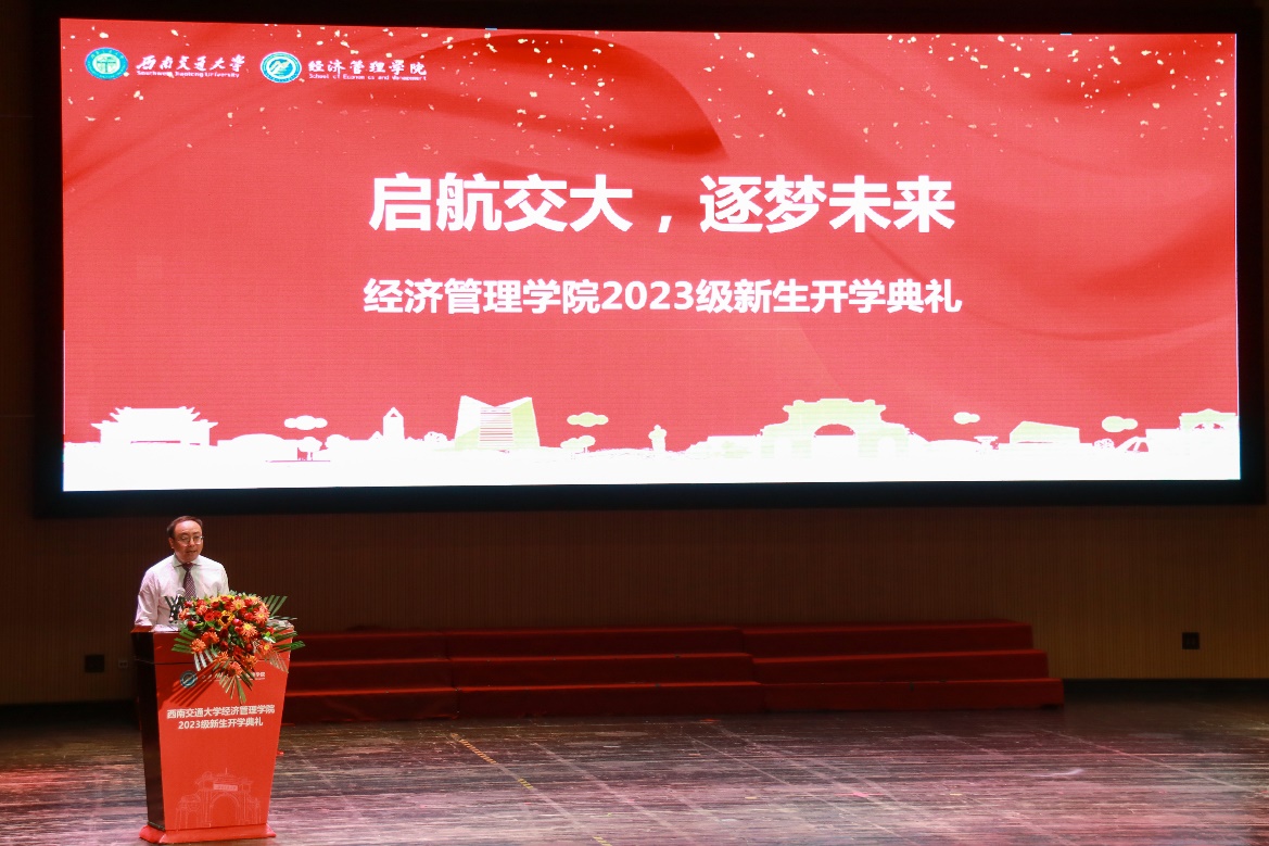 9月3日下午,bat365官网登录入口在九里校区大学生会堂隆重举行了“启航交大 逐梦未来”2023级新生开学典礼。出席本次开学典礼的领导和嘉宾有bat365官网登录入口执行院长郭强,学院2009届电子商务专业本科毕业生、2012届管理科学与工程专业硕士毕业生、新希望集团有限公司党委委员、新希望乳业股份有限公司党委书记郑世锋,原bat365官网登录入口党总支副书记、2021年“最美交大人”梁锦唐,学院党委副书记杨宏毅,学院党委副书记、纪委书记晏理斌,副院长周嘉南、李良、聂佳佳,以及学院各系、中心的教职工代表。本次开学典礼采取线上线下结合的方式,由杨宏毅主持。