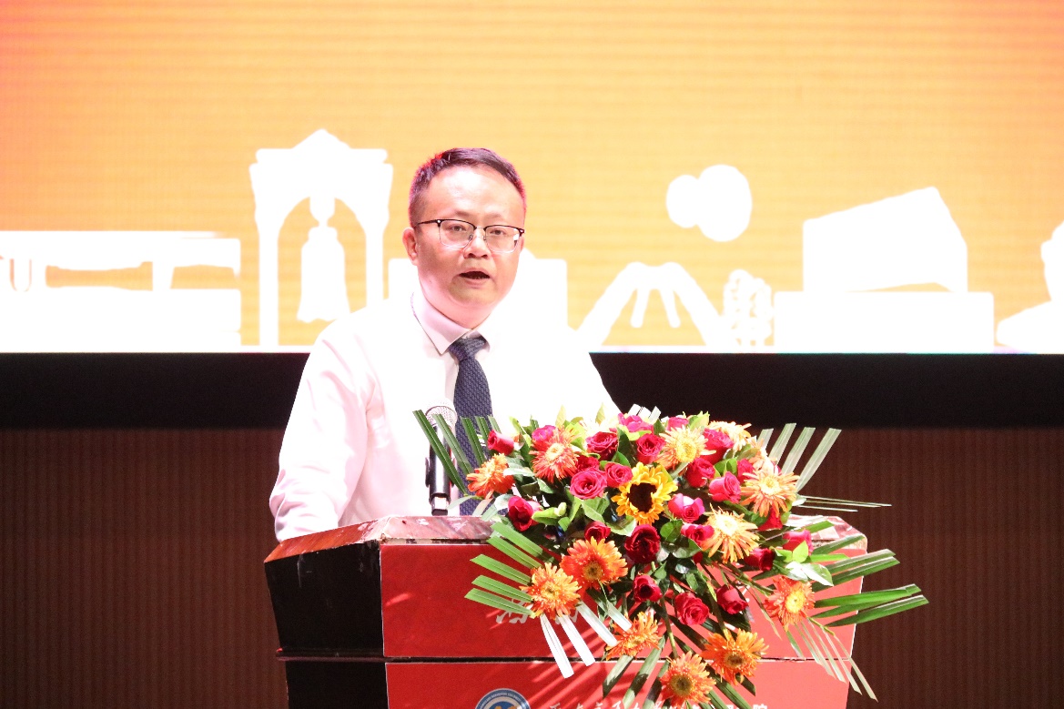 大会第四项,专业教师代表诸波发言。诸波老师结合我们现在所处的百年未有之大变局为同学们提出了三个努力方向:一是要学会学习,注重培养融会贯通的能力,努力成为一个跨学科人才;二是要与社会对话,自觉承担相应责任,学会处理人际关系;三是践行绿色生活,强身心并健体魄,保持健康绿色的生活基调。