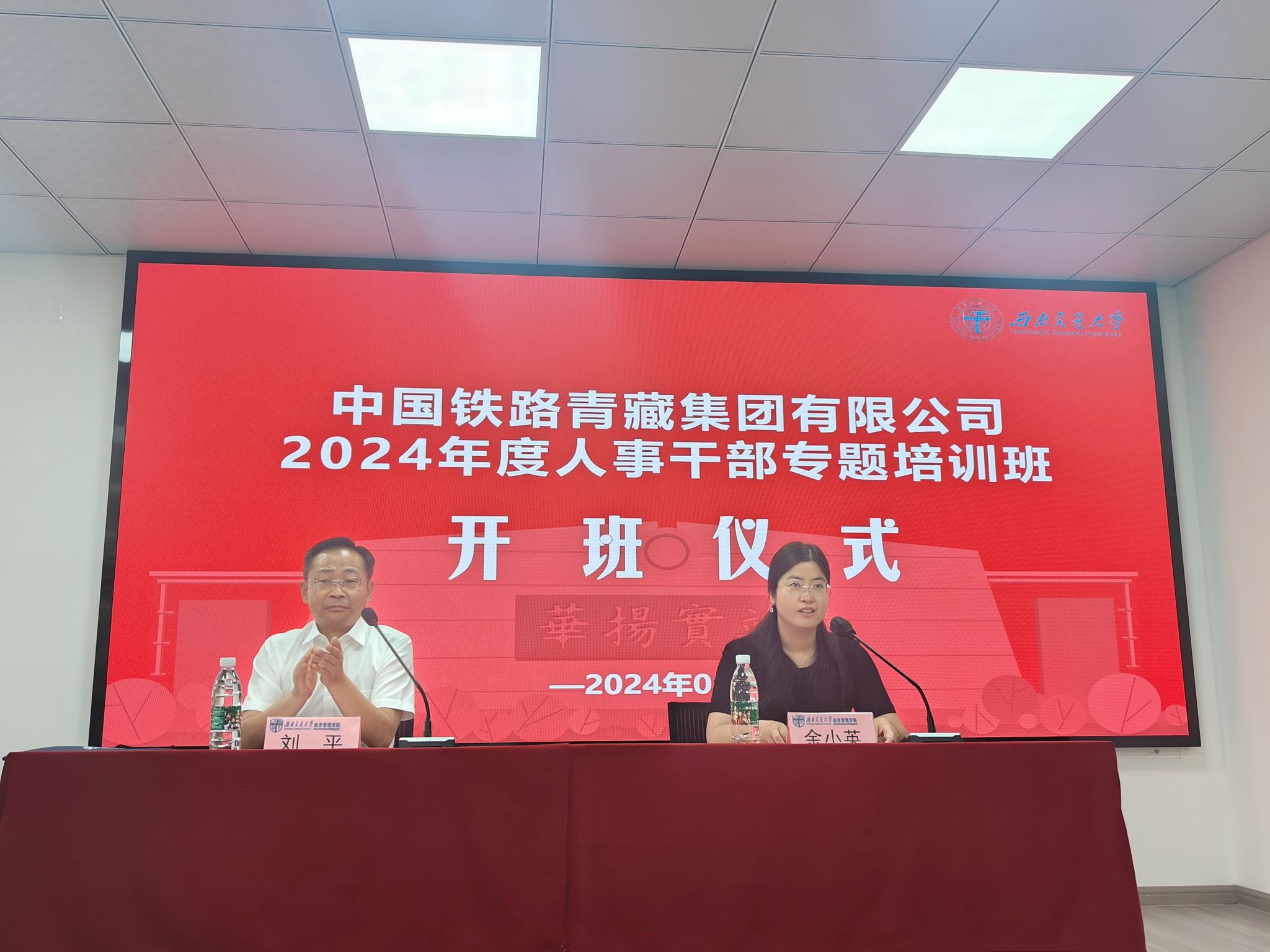 2024年5月20日上午08:30,由我院承办的中国铁路青藏集团有限公司(以下简称“青藏集团公司”)2024年度人事干部专题培训班在西南交通大学九里校区0819教室顺利开班,青藏集团公司人事部(党委组织部)部长刘平、bat365官网登录入口党委副书记余小英出席开班仪式。